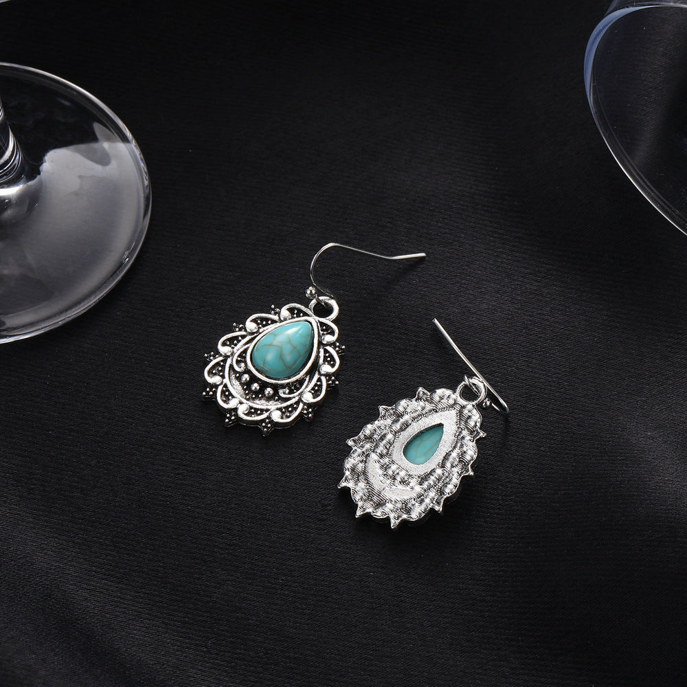 Wholesale Bohemian turquoise teardrop shaped carved earrings