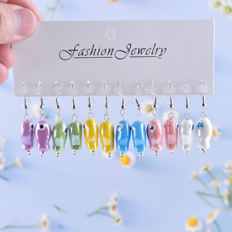 Wholesale Colorful fish ceramic earring set