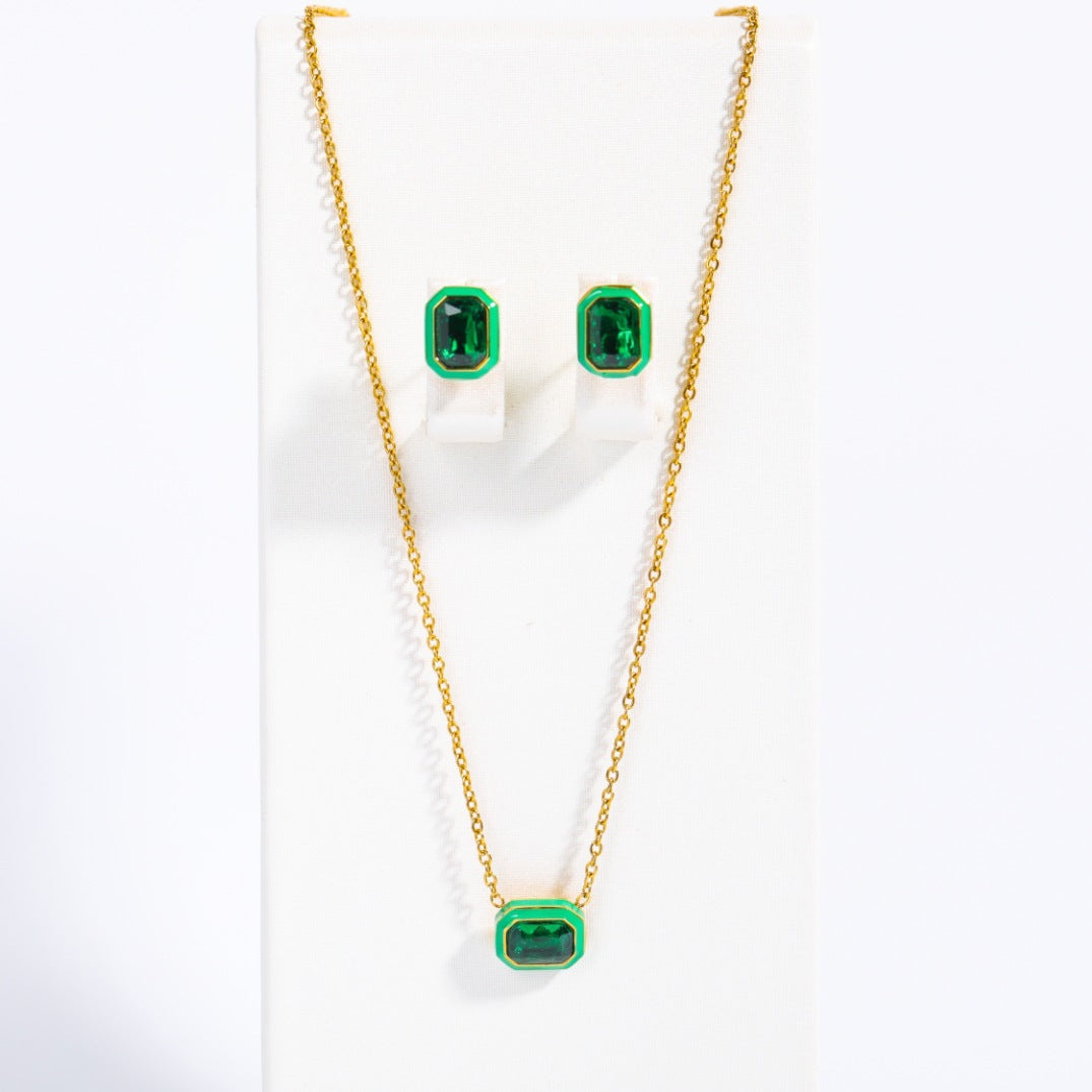 - Green edge oil dripping zircon pendant horizontal hanging o-shaped chain necklace
