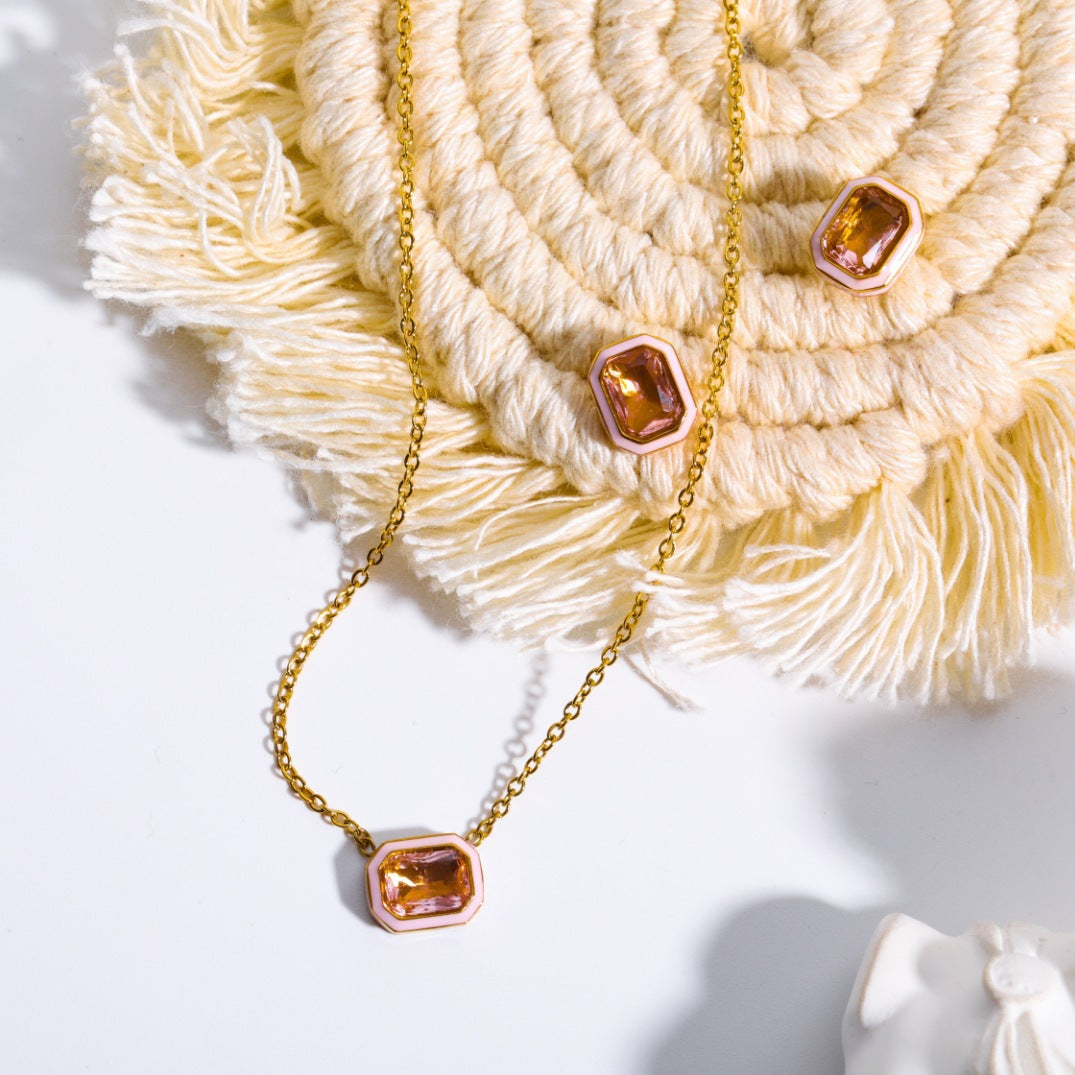 - Pink edge oil dripping zircon pendant horizontal hanging o-shaped chain necklace