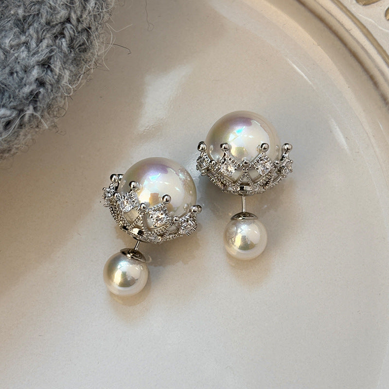 Wholesale S925 Sterling Silver Large Colorful Pearl Earrings