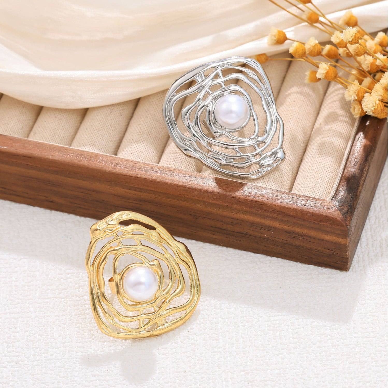 Wholesale Asymmetrical Winding Pearl Open Ring