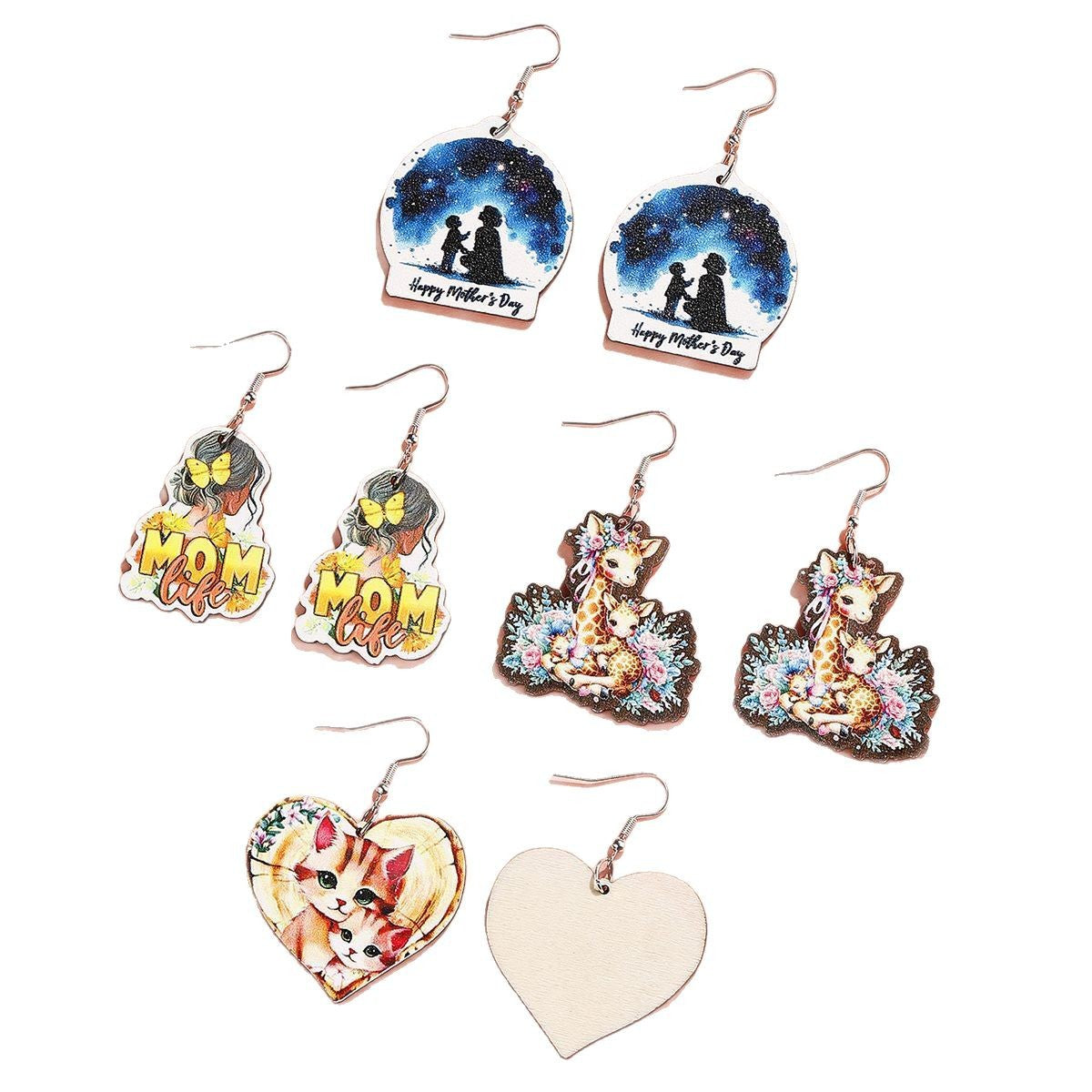 Wholesale Mother's Day Wooden MOM Earrings