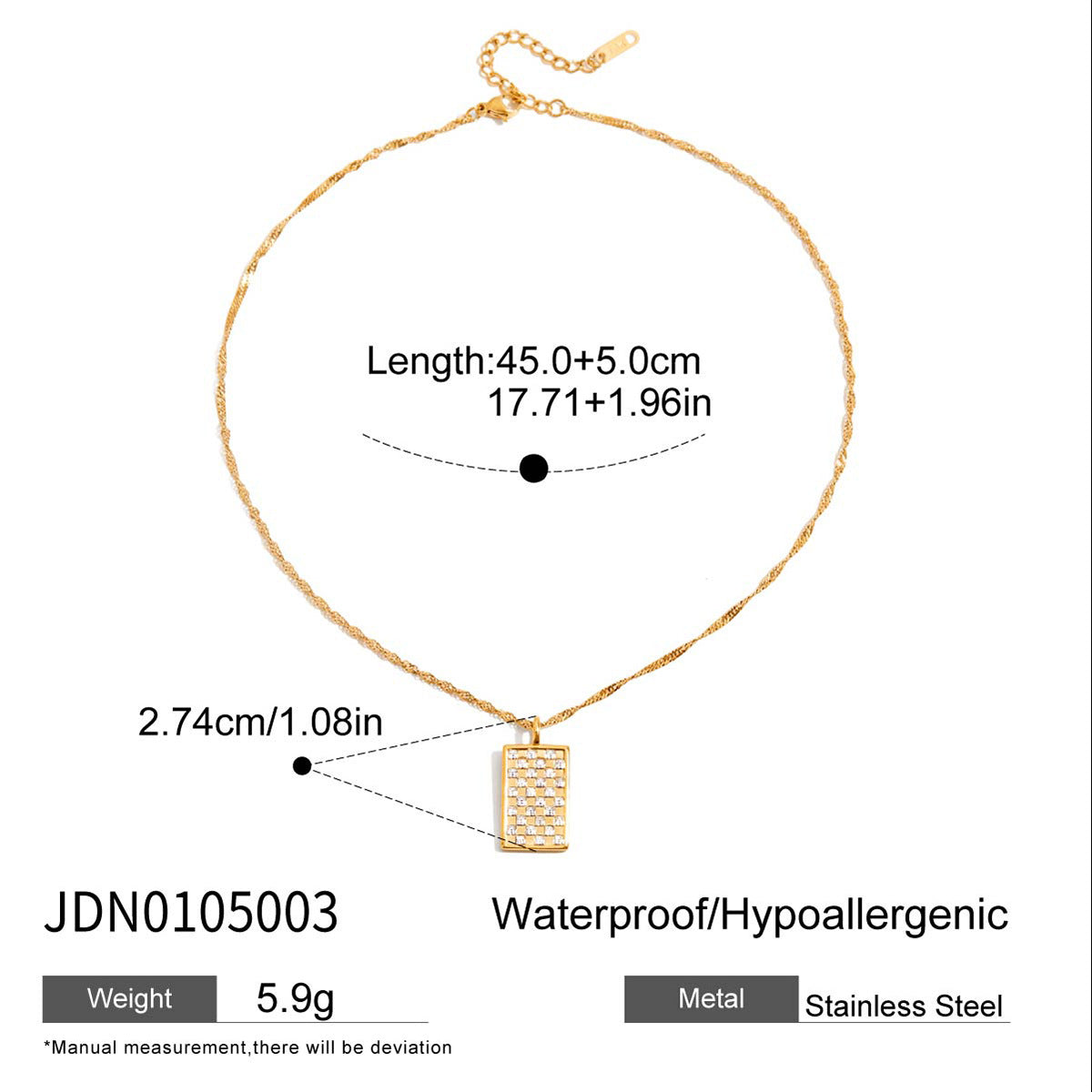 Wholesale 18K Gold with White Diamond Rectangular Pendant Stainless Steel Necklace
