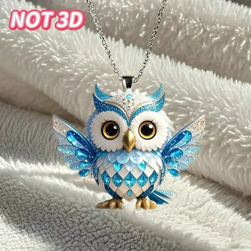 Wholesale Blue Cute Owl Flat Acrylic Necklace