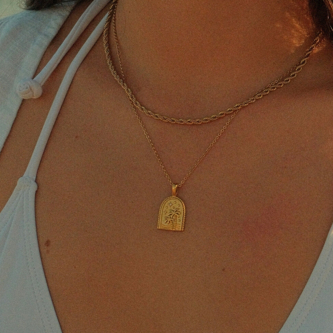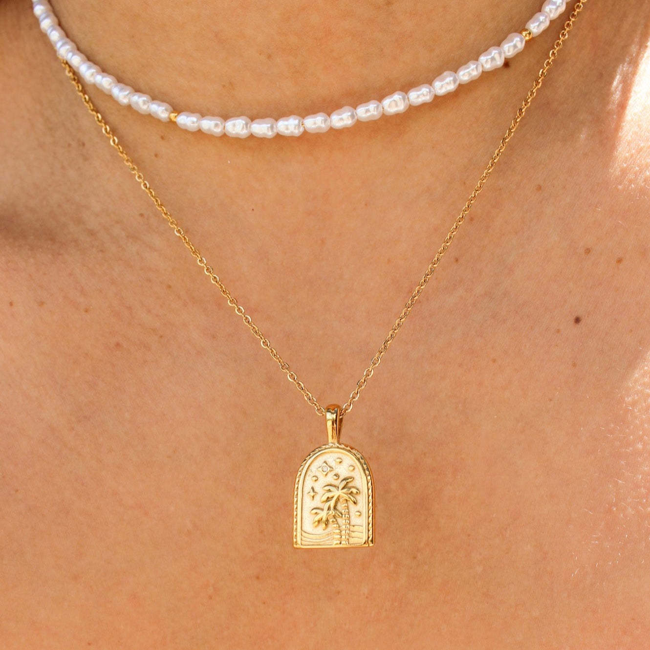 Wholesale Stainless Steel Palm Tree Necklace Star Moon Zircon Geometric Clavicle Chain