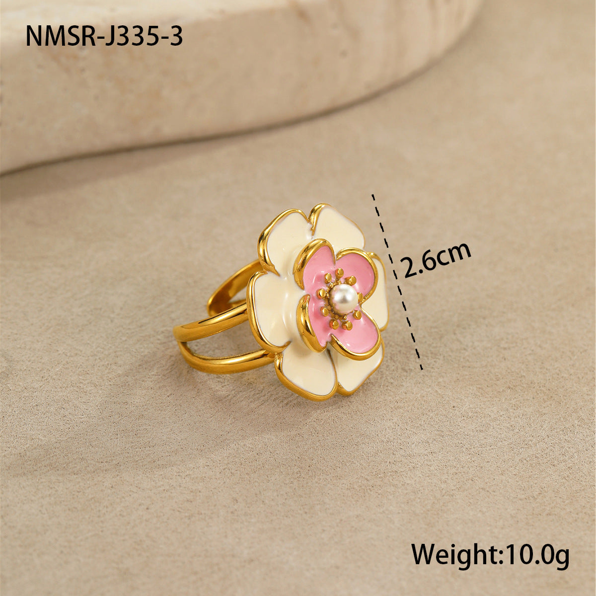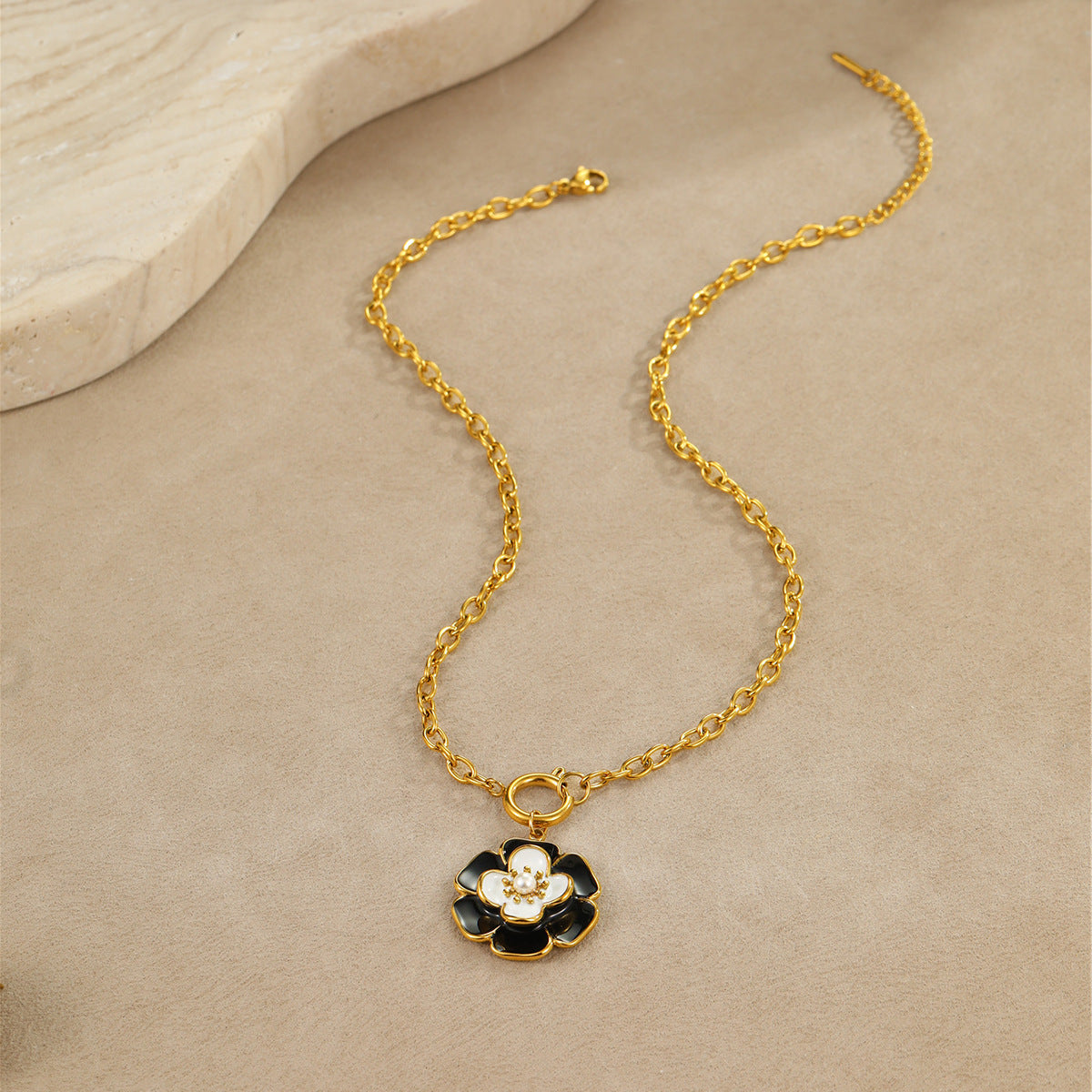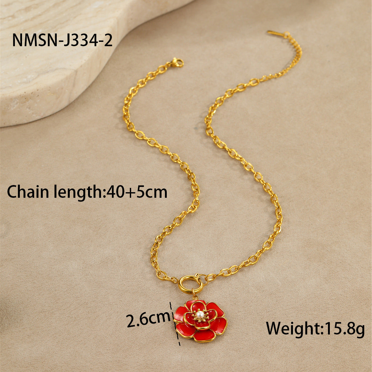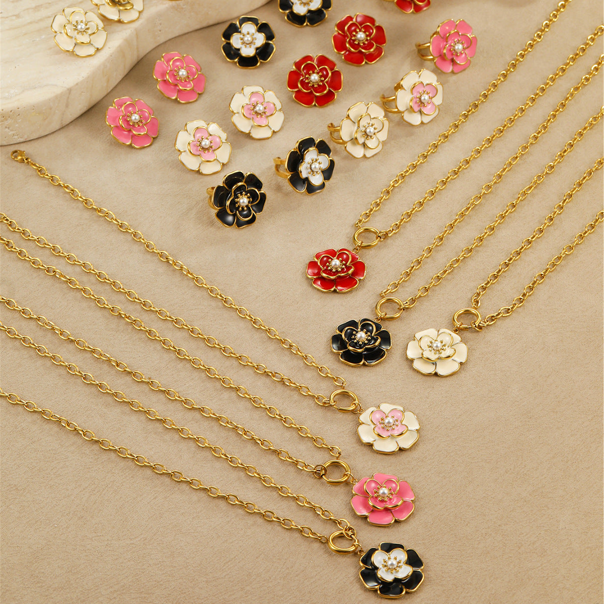 Wholesale camellia oil drop flower necklace stainless steel ring earrings
