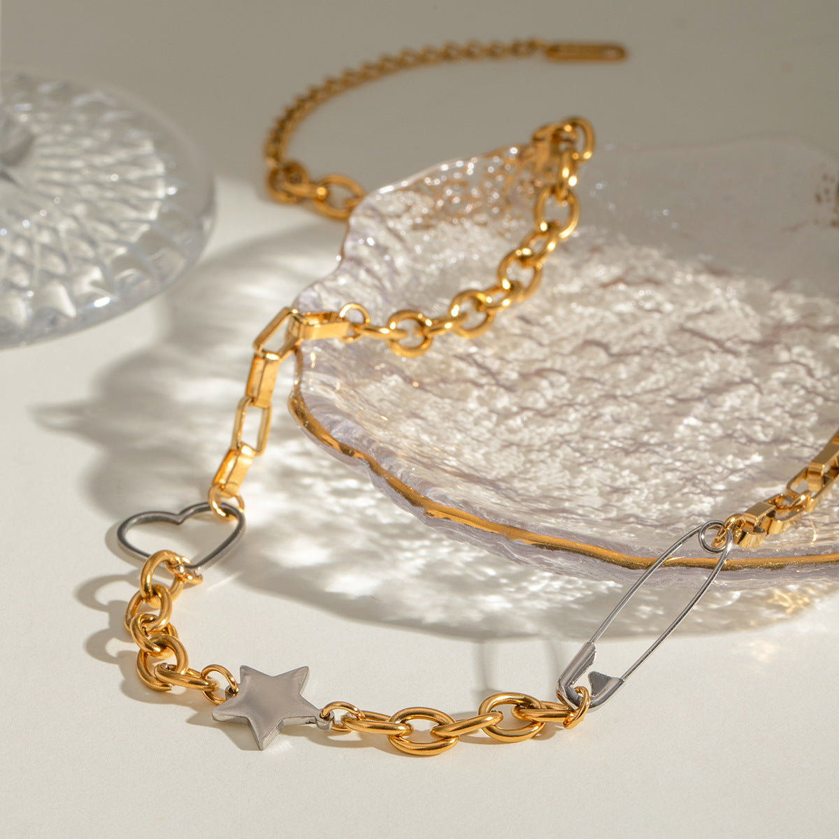 Wholesale five-pointed star classic 18k gold and silver color matching five-pointed star necklace