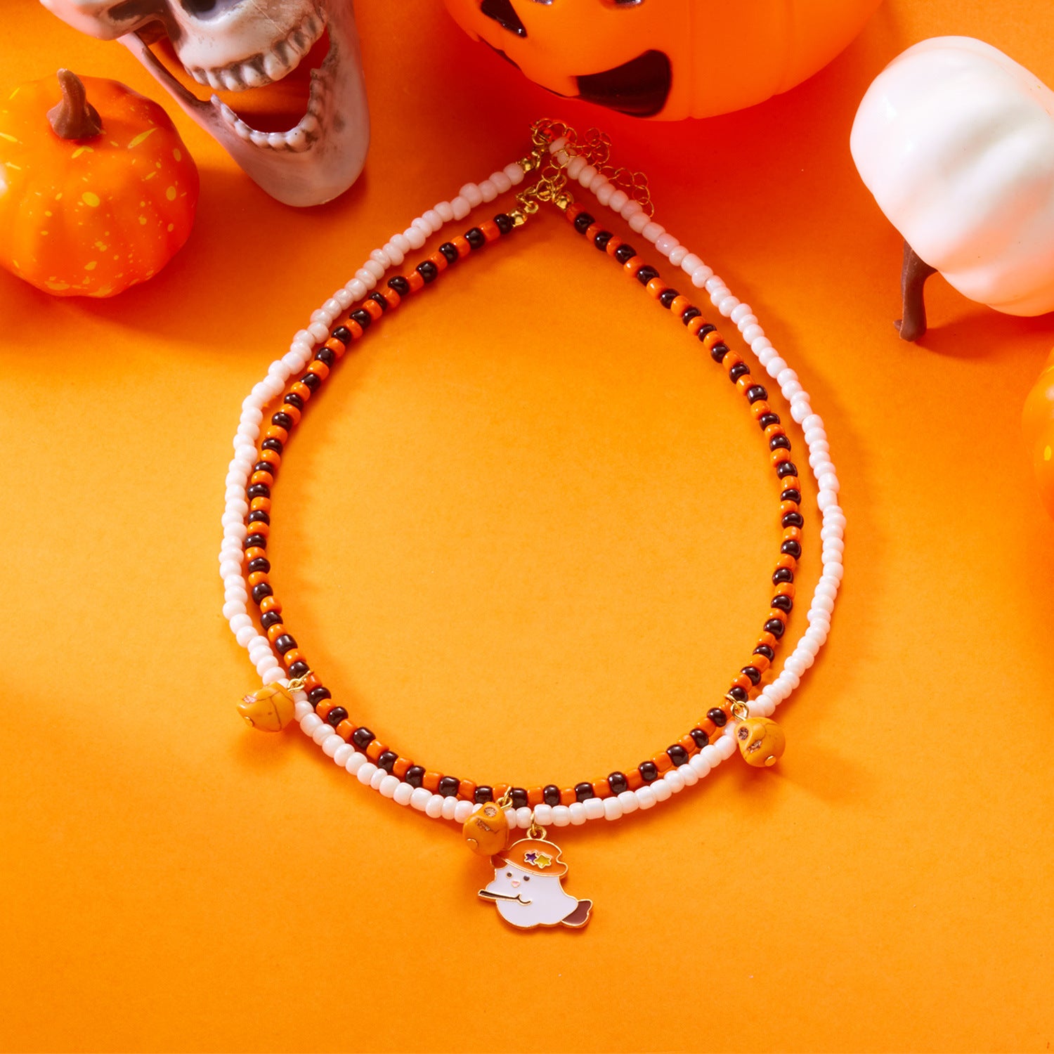 Großhandel Halloween Kürbiskopf Verstellbarer Reisperlenkette