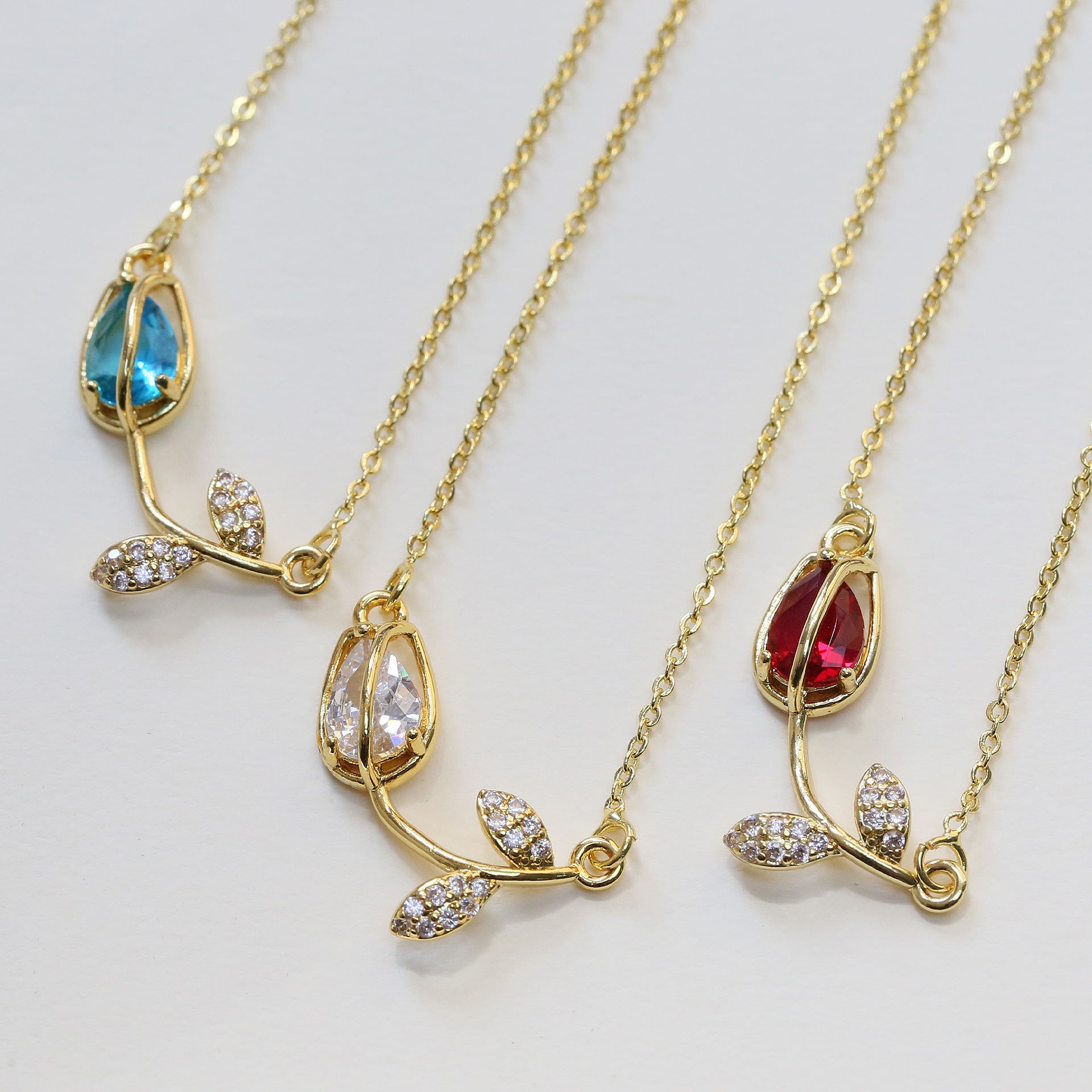 Wholesale Light luxury full diamond zircon rose flower pendant necklace
