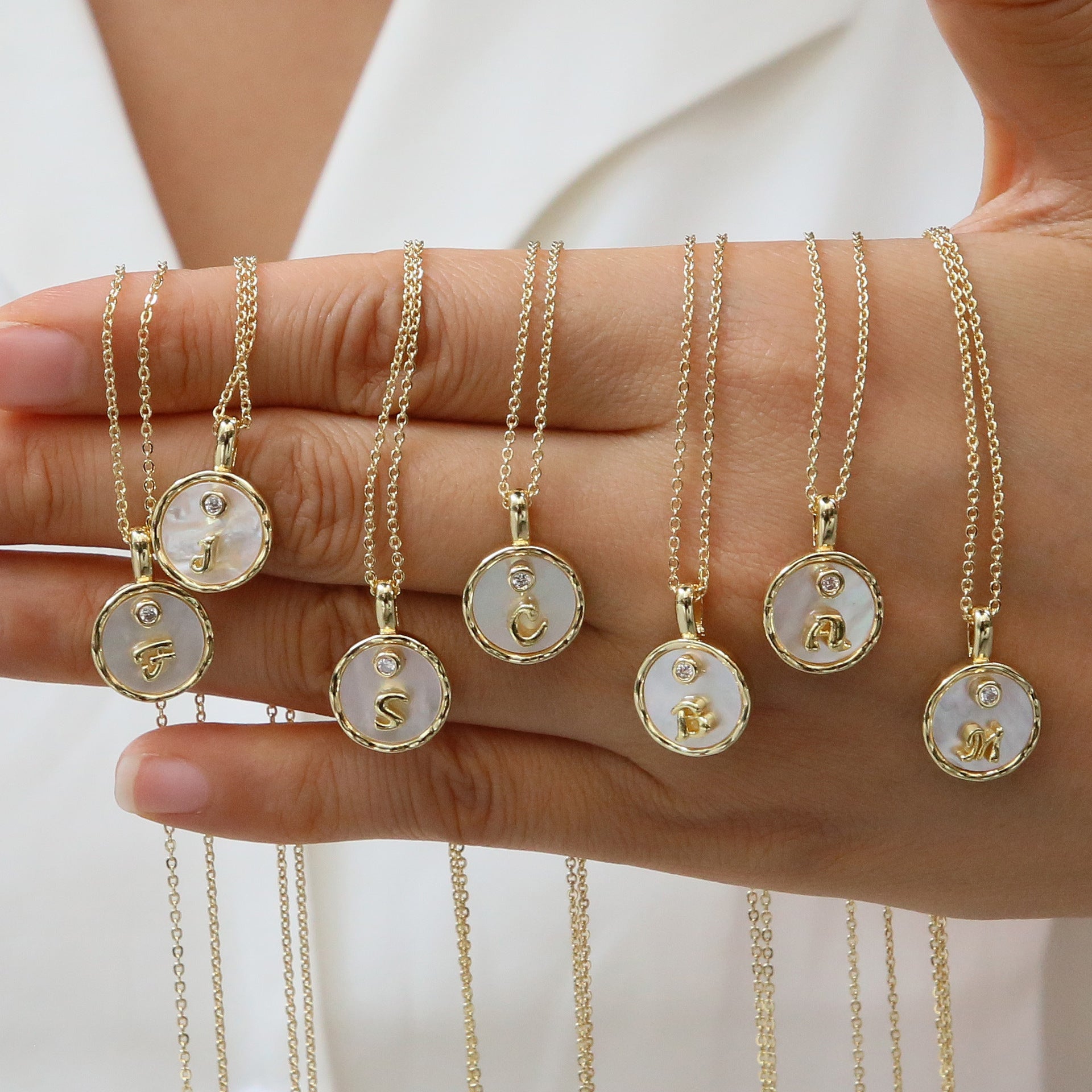 Wholesale Natural shell 26 English letters round pendant clavicle necklace