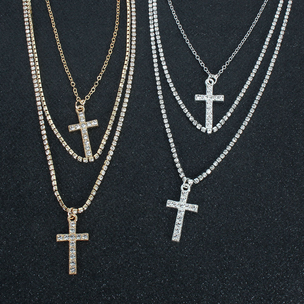 Großhandel Retro Cross Perlen-Kette Mehrschicht-Halskette