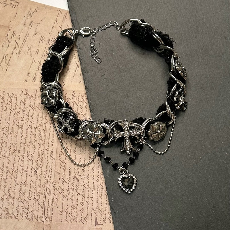 Wholesale Retro Plush Wool Stitching Cross Love Necklace