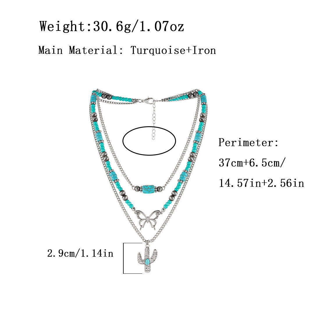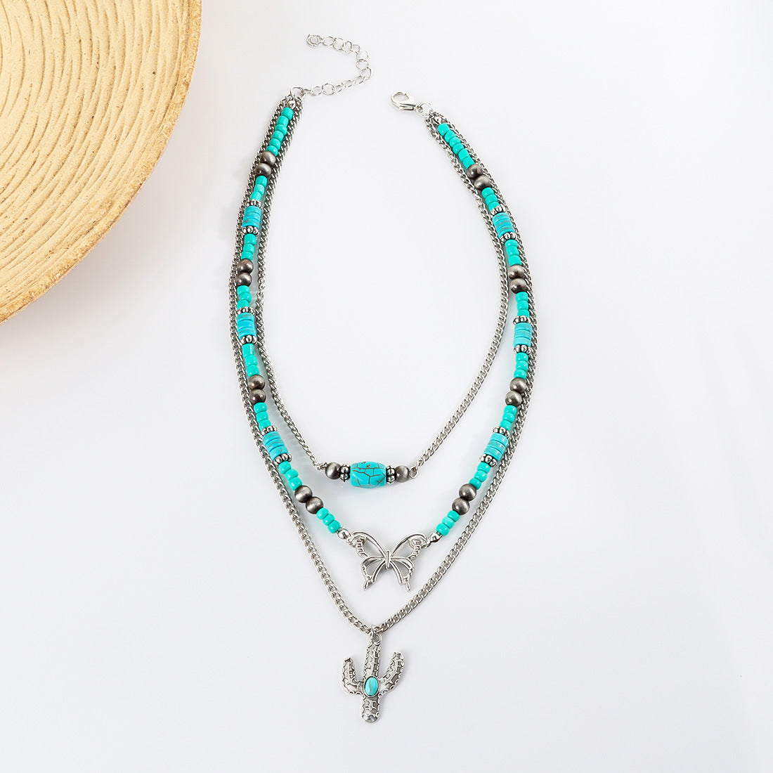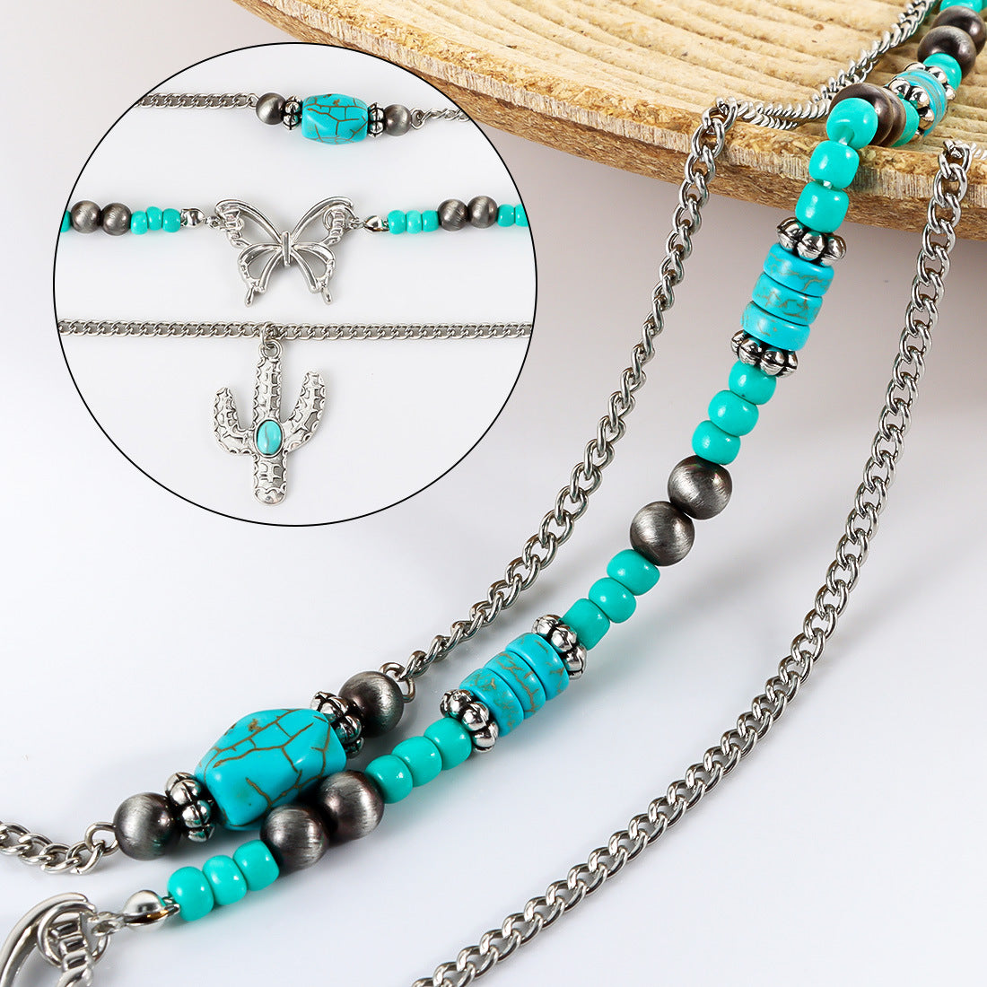 Großhandel Retro türkiser Schmetterlings Schlüsselblattkette Ethnische Kaktuskette