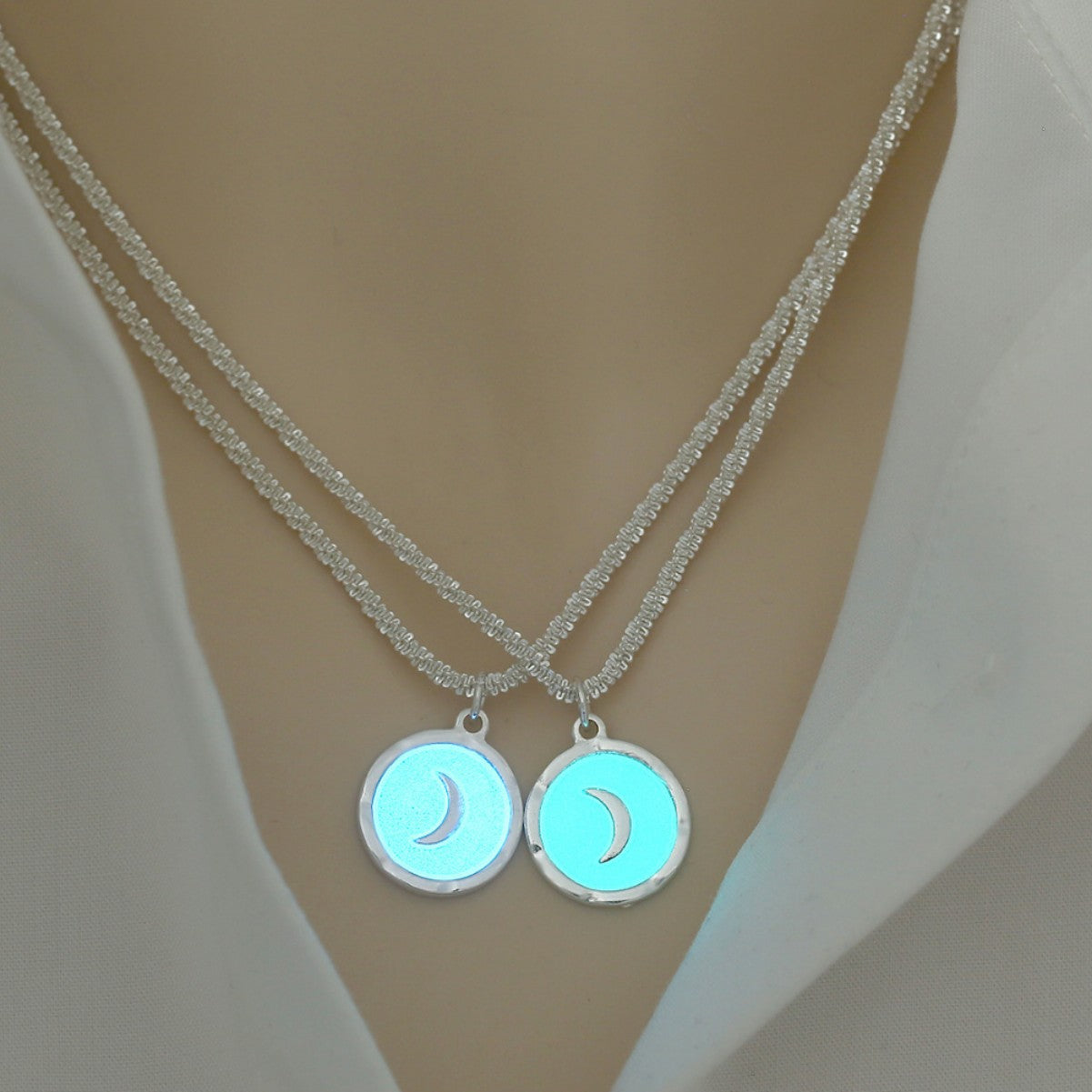 Wholesale Silver creative moon oil drop luminous glowing blingbling cauliflower necklace