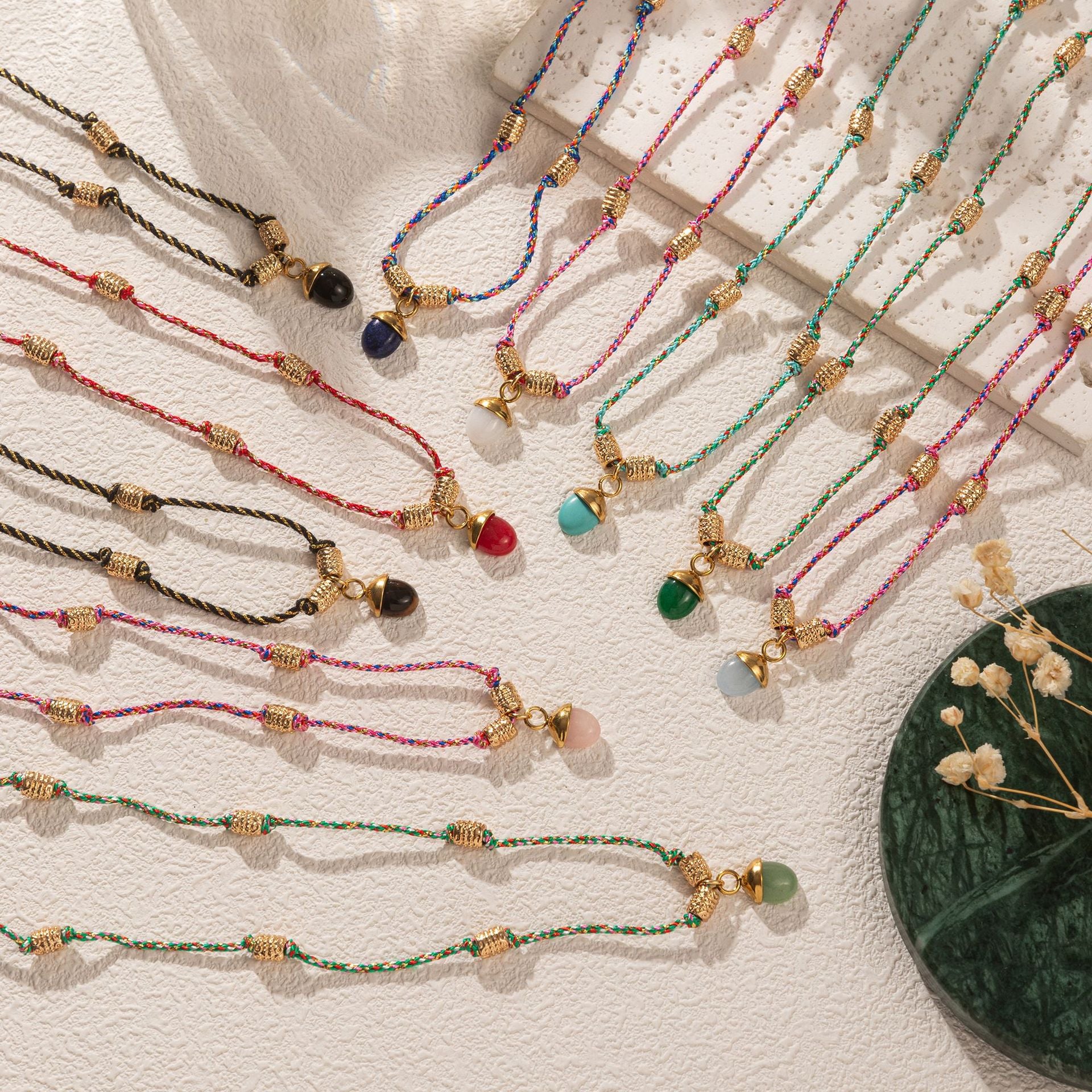 Wholesale Titanium Steel Necklace Half Circle Natural Stone Acorn Pine Cone Pendant
