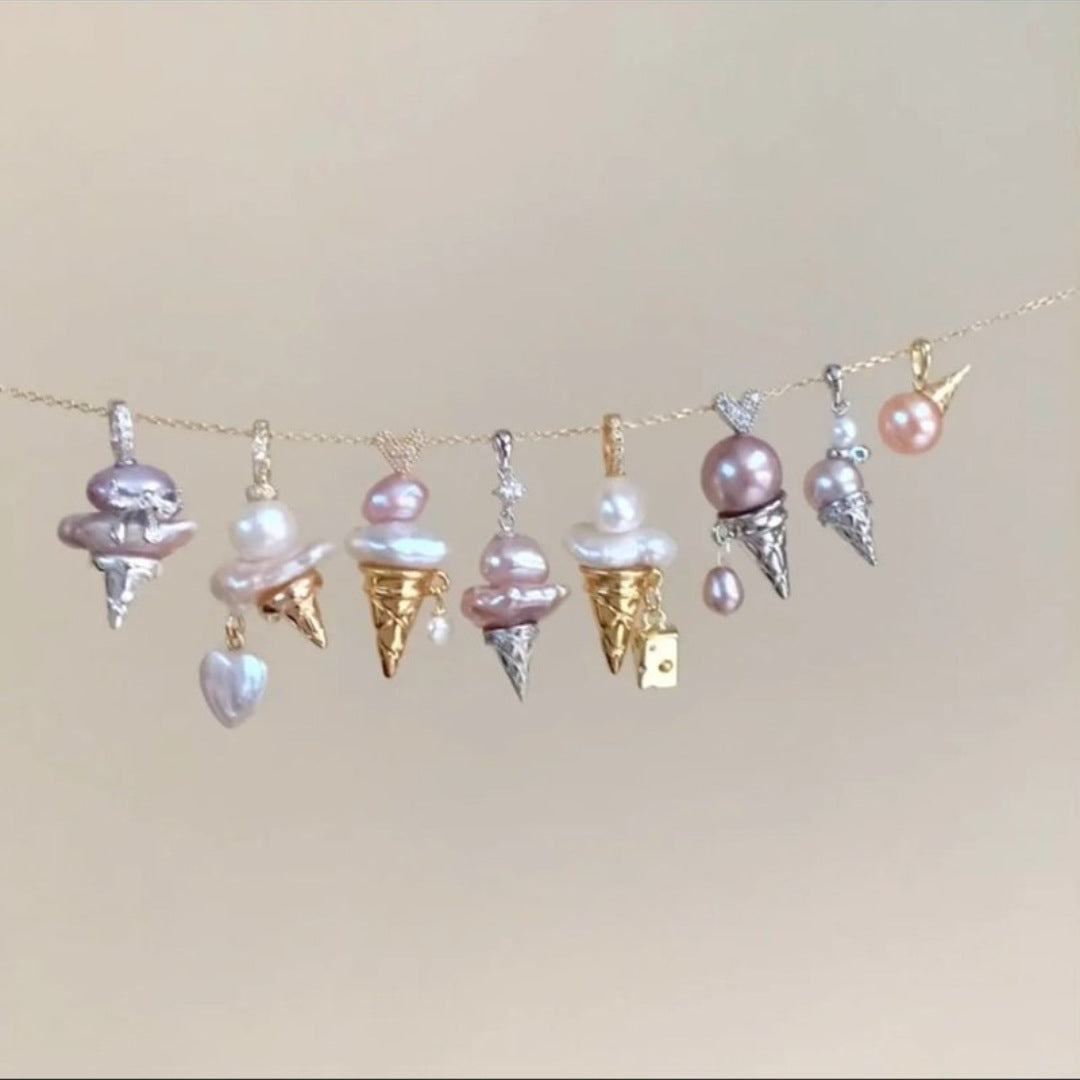 Wholesale 18K gold plated Man-made pearl ice cream pendant
