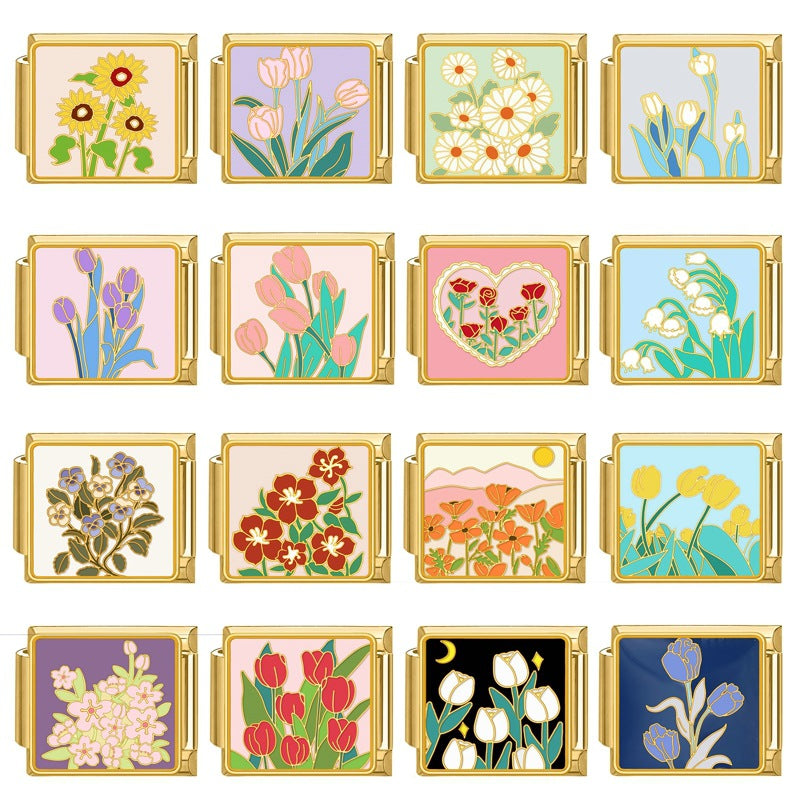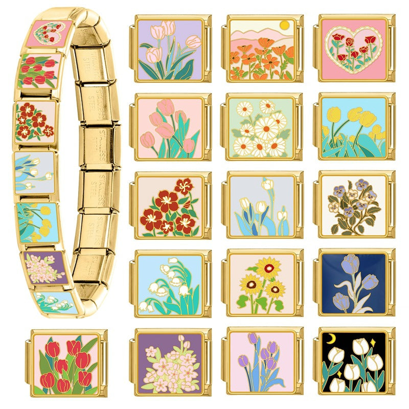 Wholesale 9mm Italian Charm Starter Bracelets DIY Flower Stainless Steel Composable Bracelet