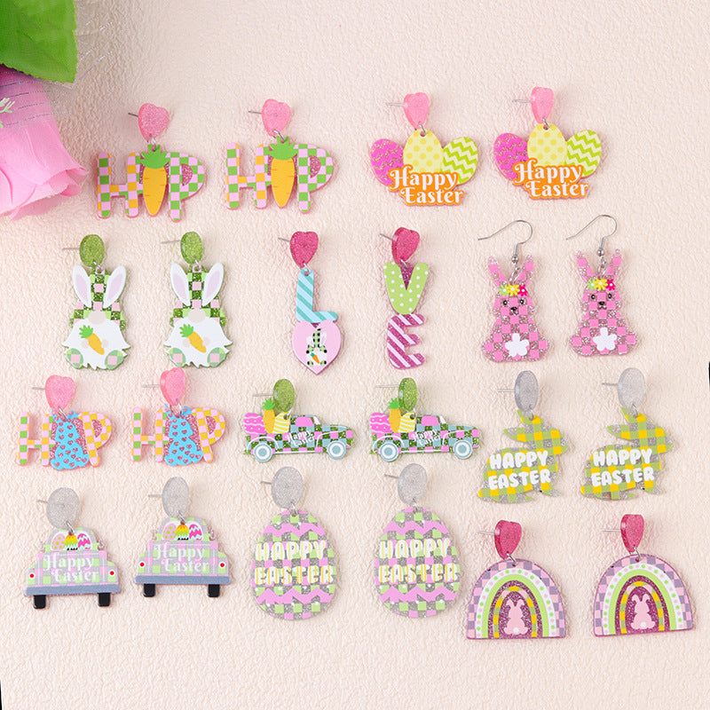 Wholesale Acrylic Easter Bunny Egg Earrings