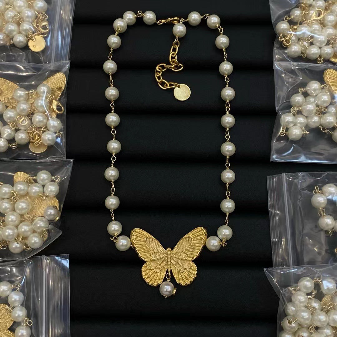 Wholesale Brass Man-made Pearl Butterfly Necklace ACCVIP