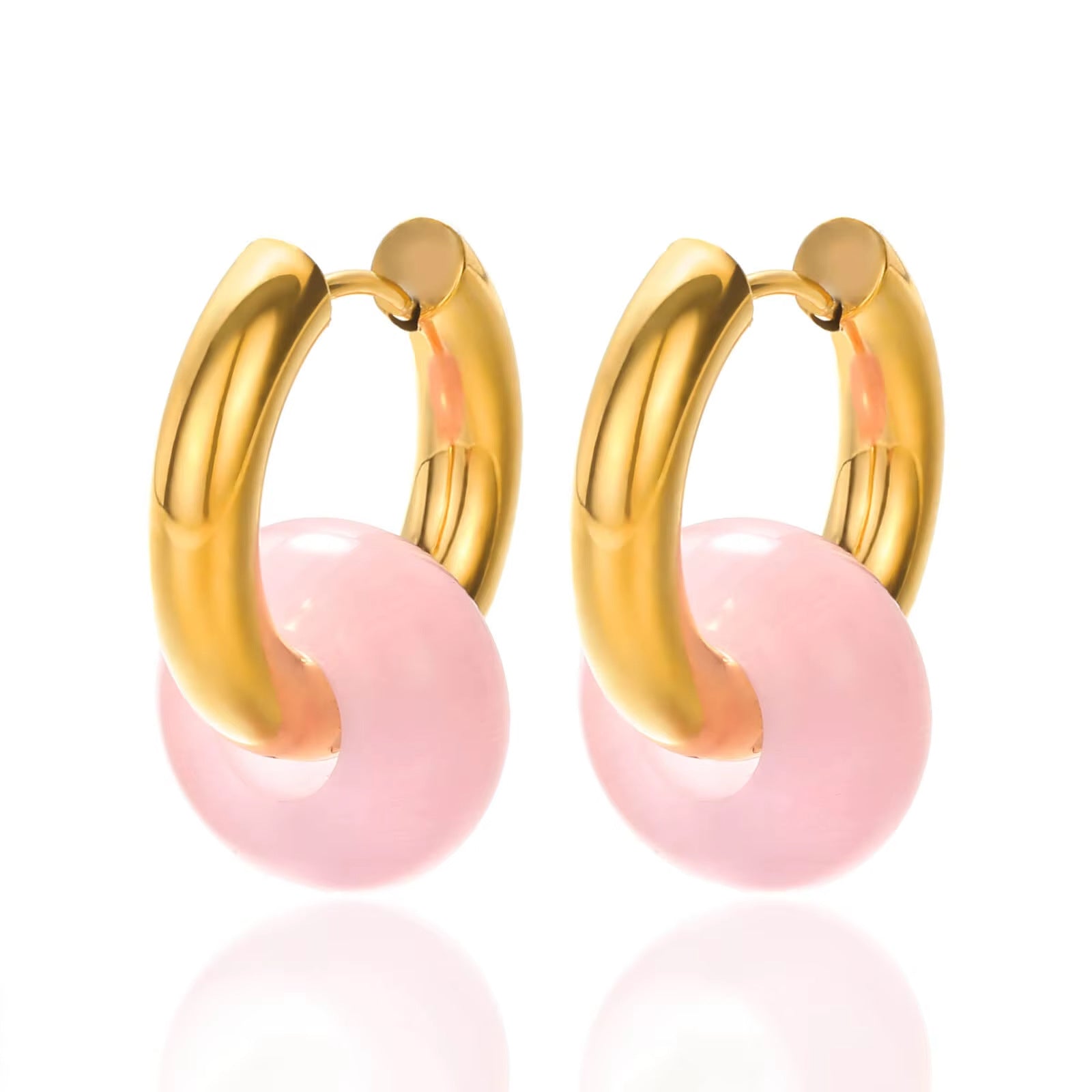Wholesale Stainless steel earrings plated with 18K gold and natural stone