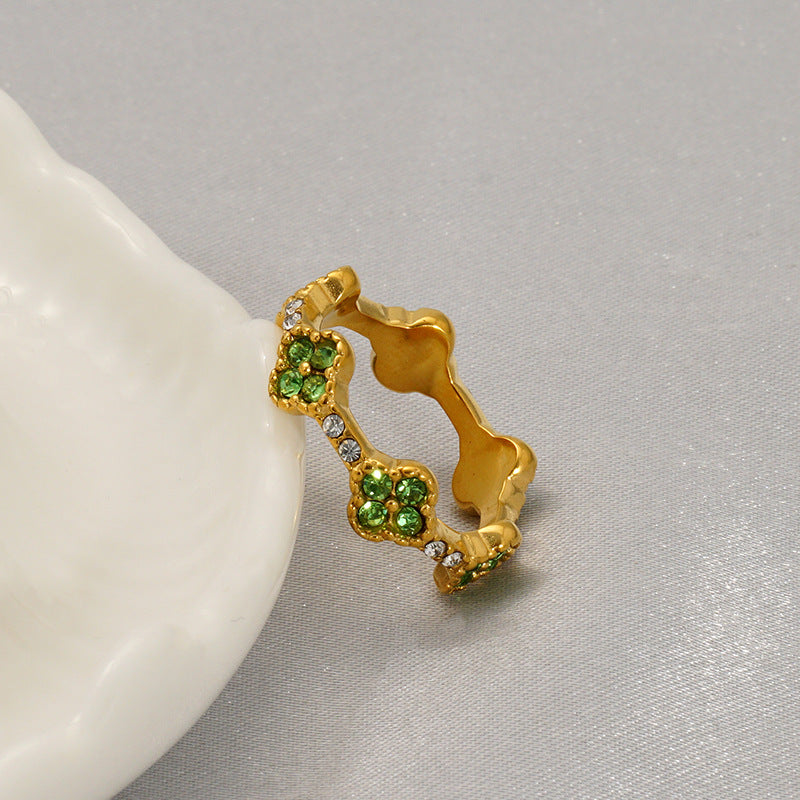Wholesale Steel titanium ring with rhinestones, man-made pearl flower ring