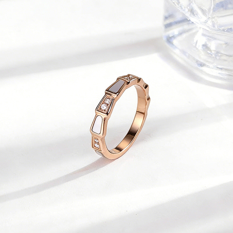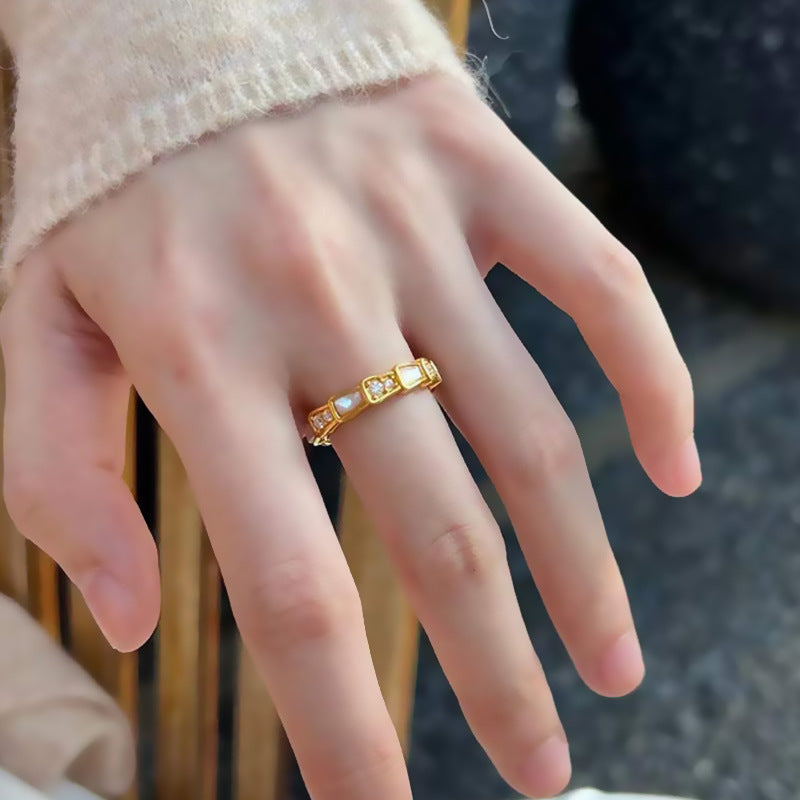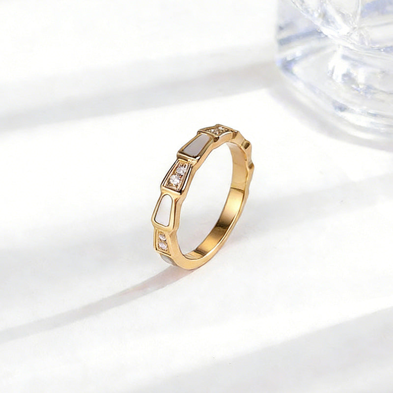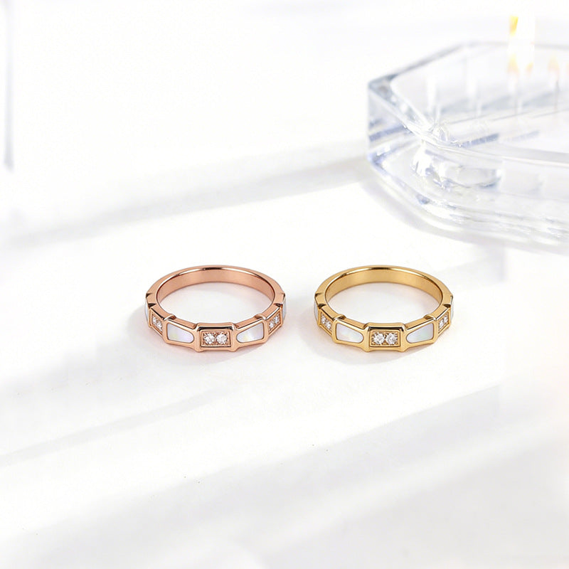 Wholesale Steel titanium set with rhinestones white mother-of-pearl ring