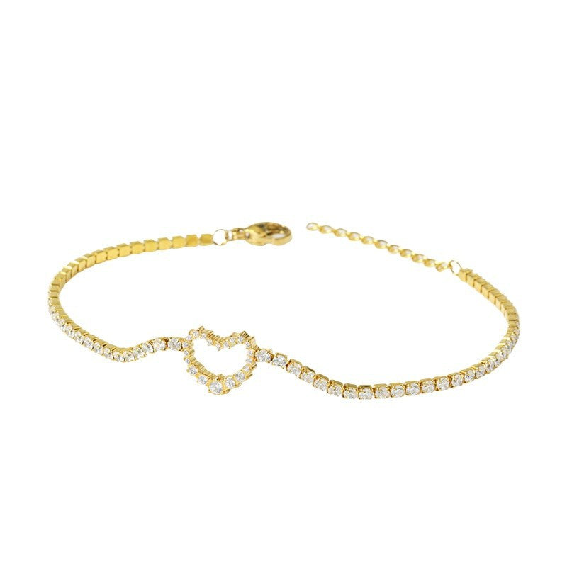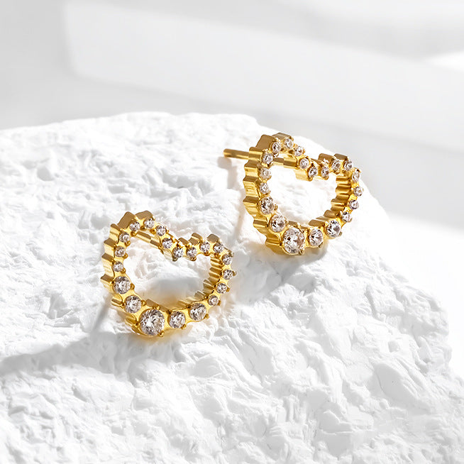 Wholesale Titanium steel heart-shaped necklace earrings and bracelet set inlaid with zircon.