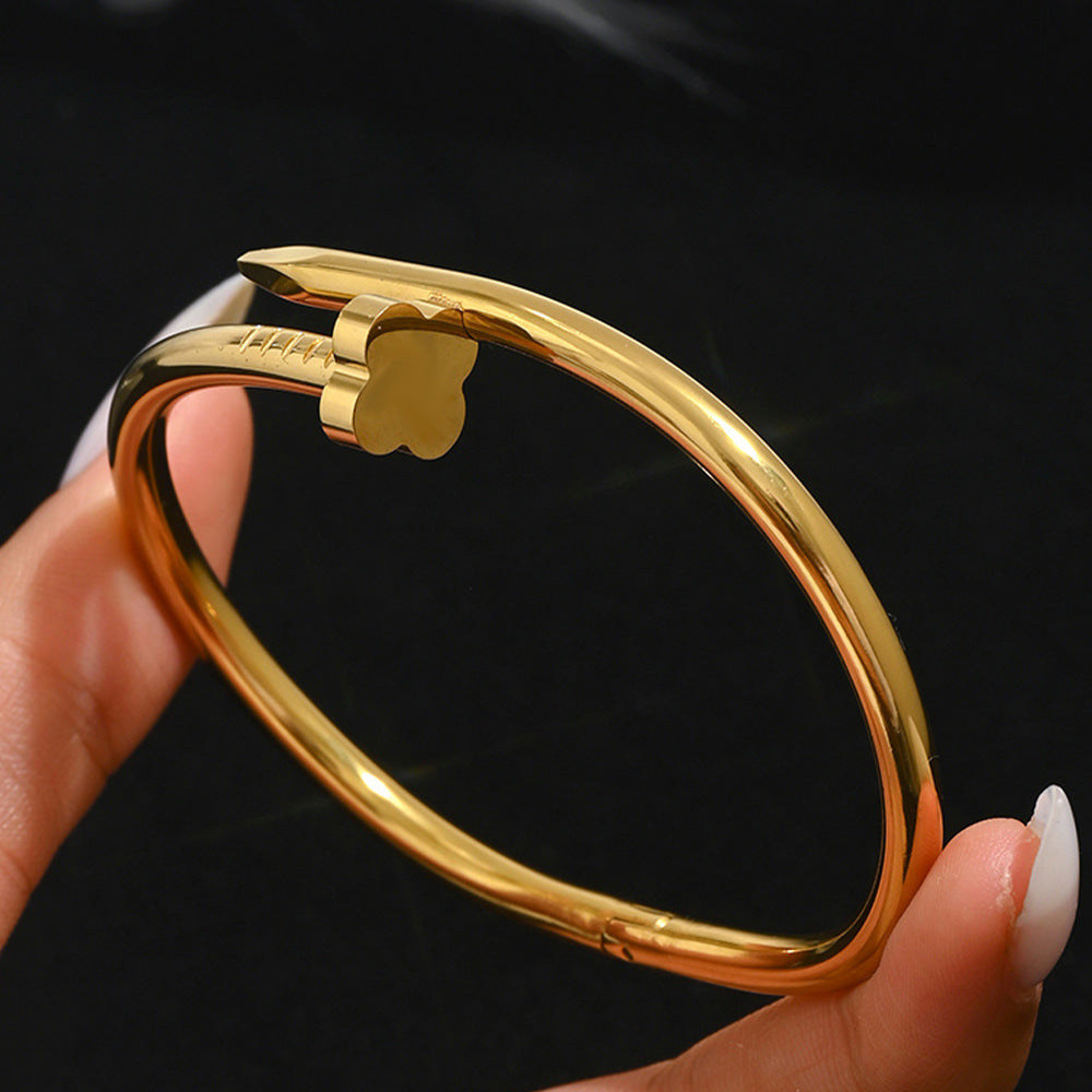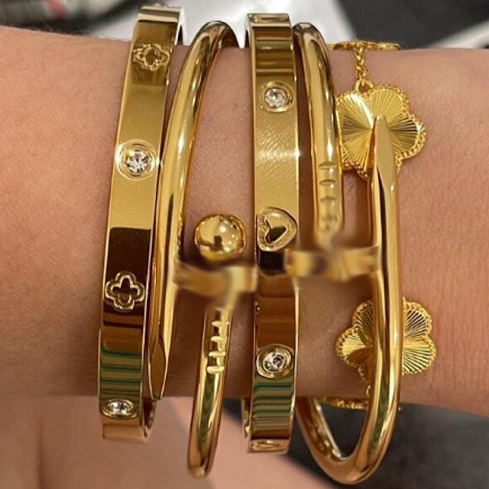 Wholesale Titanium steel nail four-leaf clover diamond-encrusted bracelet