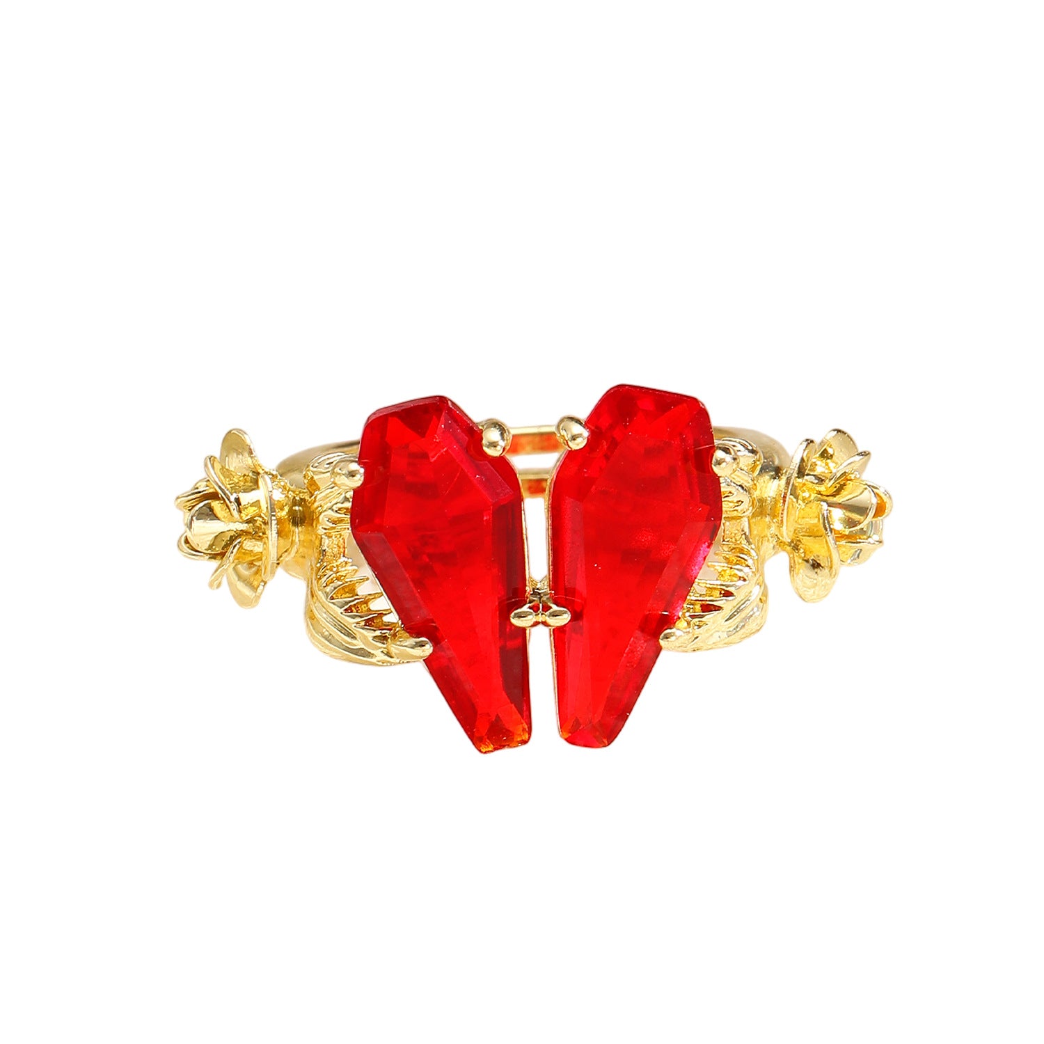 Wholesale Copper ring with zircon-encrusted rose and heart design adjustable opening