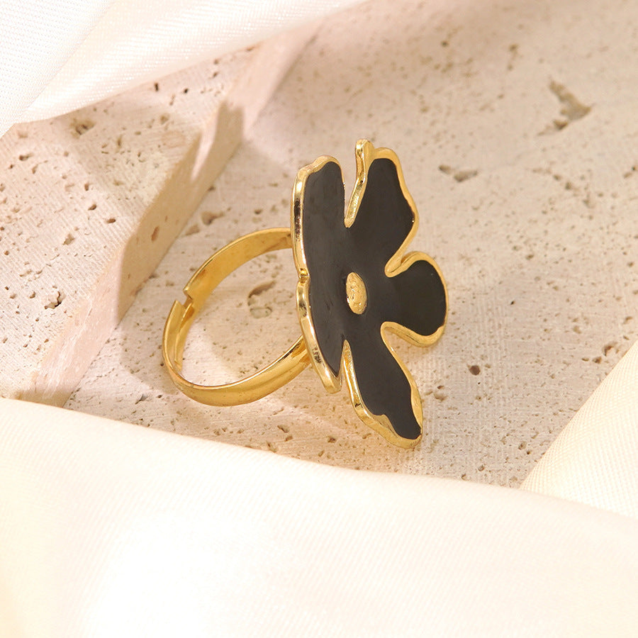 Wholesale oil drop flower ring holiday style stainless steel flower ring
