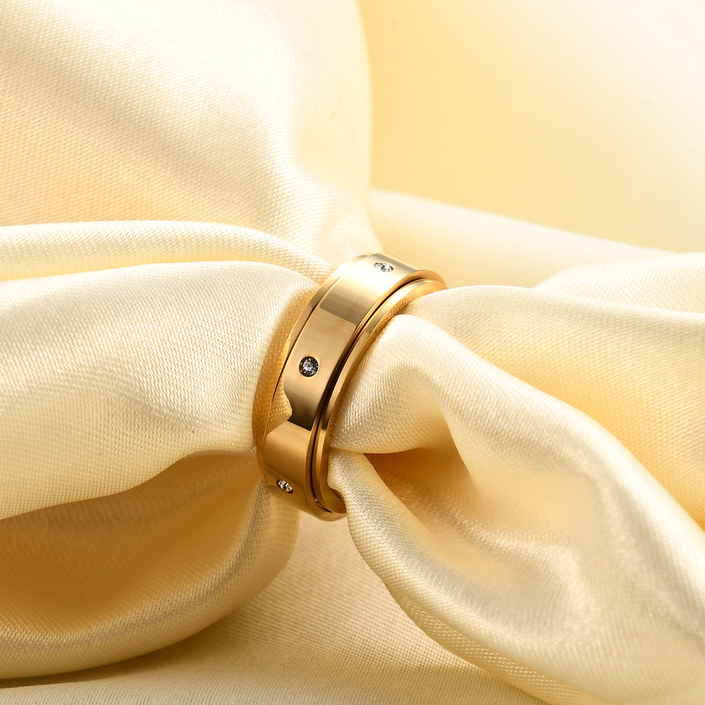 Wholesale Symmetrical Diamond Decompression Rotatable Titanium Steel Ring