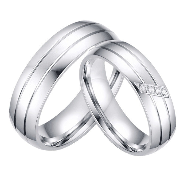 Wholesale stainless steel couple ring simple two-color couple diamond ring
