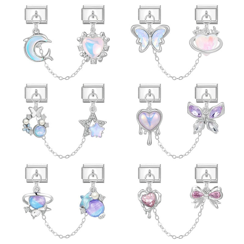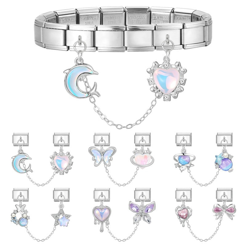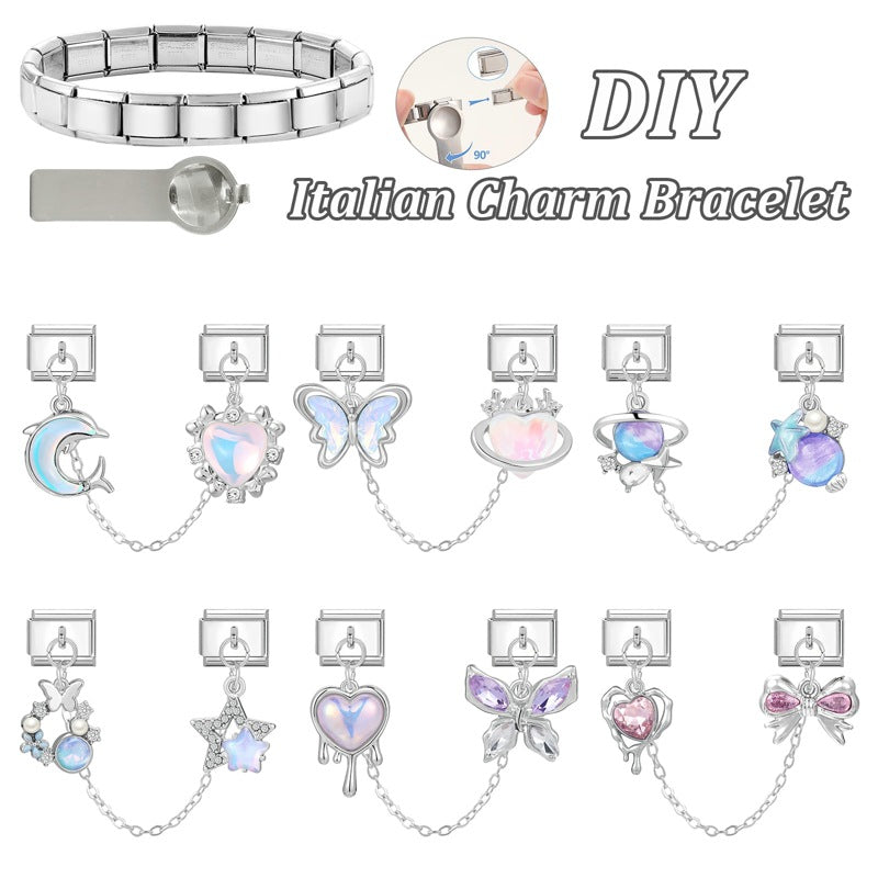 Wholesale 2PCS 9mm Italian Charm Starter Bracelets DIY Double Hanger Stainless Steel Composable Bracelet