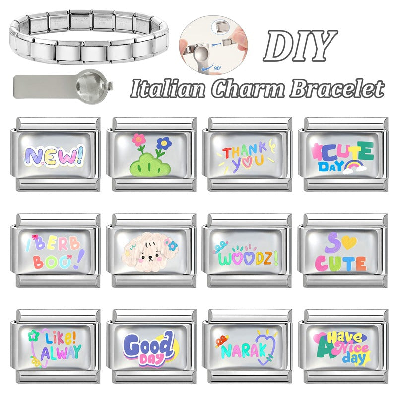 Wholesale 9mm Italian Charm Starter Bracelets DIY Cute Cartoon Stainless Steel Composable Bracelet