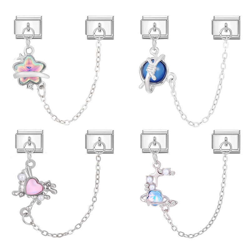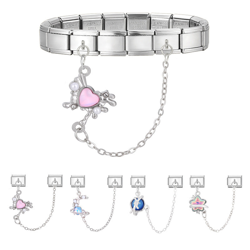 Wholesale 9mm Italian Charm Starter Bracelets DIY Double Hanger Stainless Steel Composable Bracelet