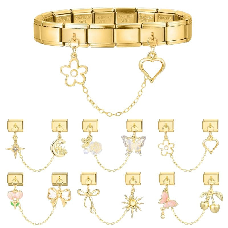 Wholesale 9mm Italian Charm Starter Bracelets DIY Double Hanger Stainless Steel Composable Bracelet