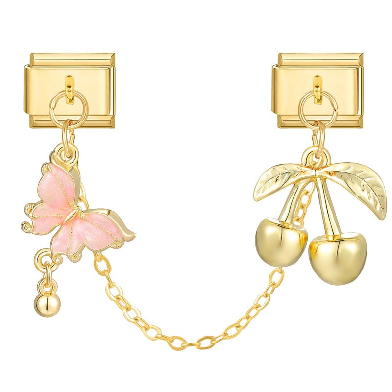 - Gold bottom double hanging-butterfly+ cherry