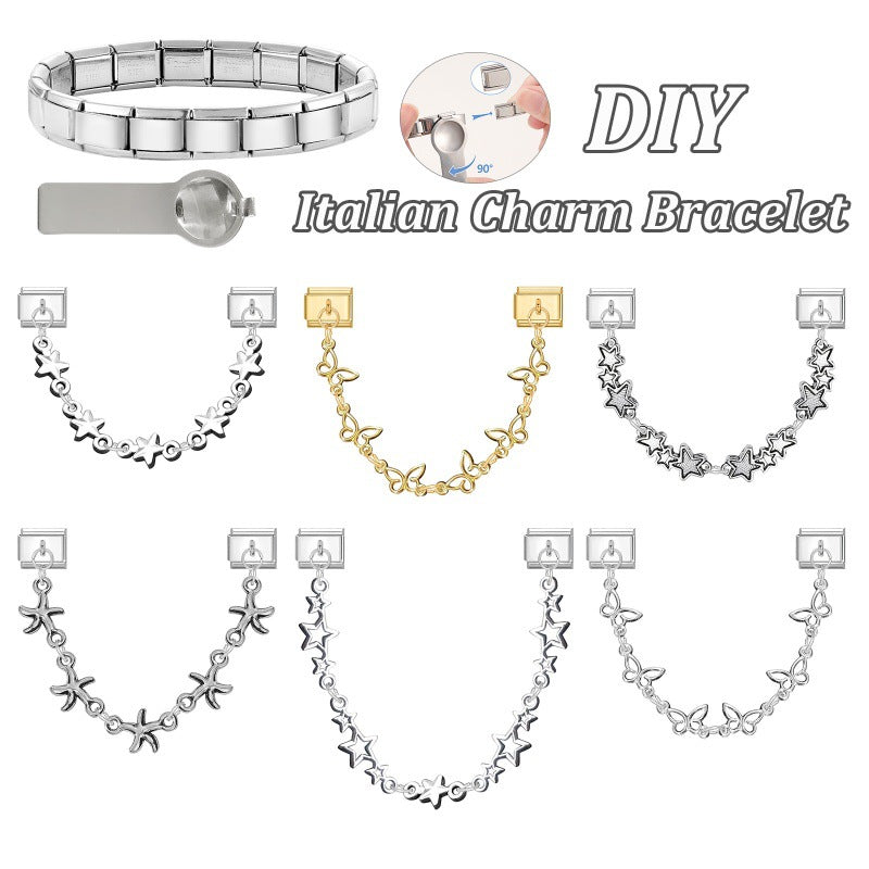 Wholesale 9mm Italian Charm Starter Bracelets DIY Double Hanger Stainless Steel Composable Bracelet