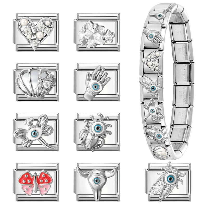 Wholesale 9mm Italian Charm Starter Bracelets DIY Evil Eye Series Stainless Steel Composable Bracelet