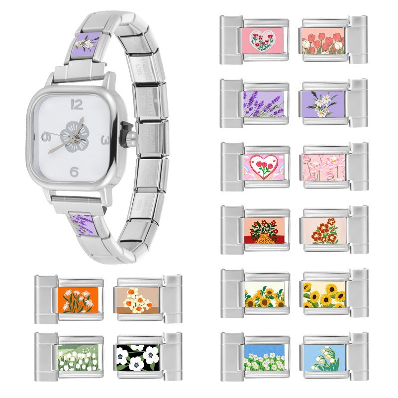 Wholesale 9mm Italian Charm Starter Bracelets DIY Flower Series Stainless Steel Composable Bracelet