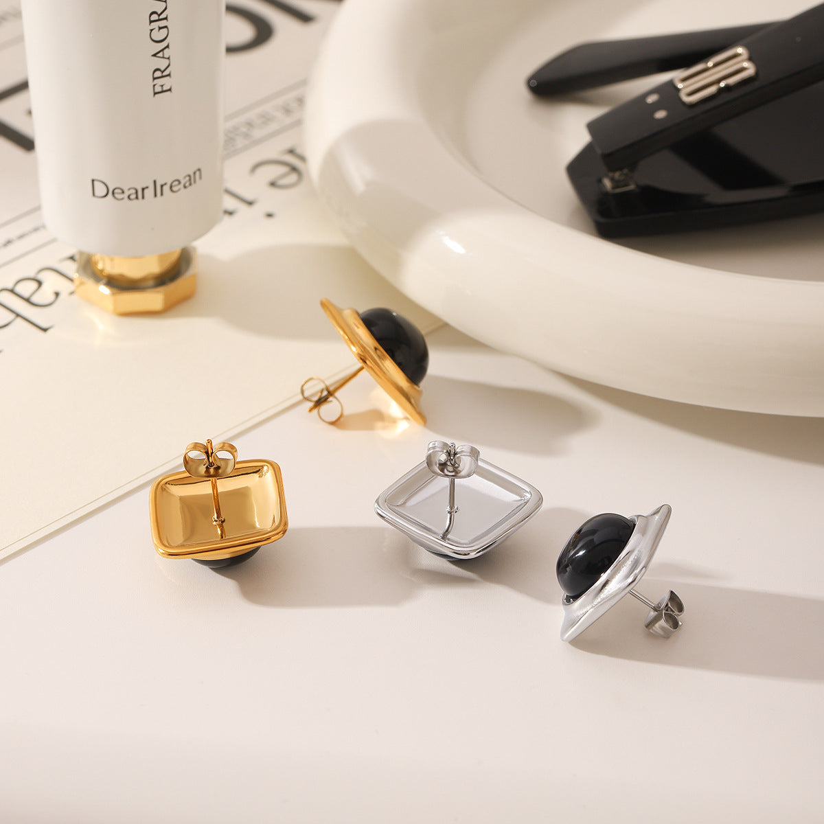 Wholesale Stainless Steel 18K Gold Inlaid Obsidian Small Square Earrings