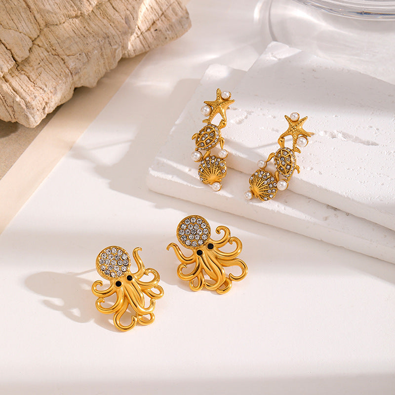 Wholesale Stainless steel marine animal octopus and starfish earrings
