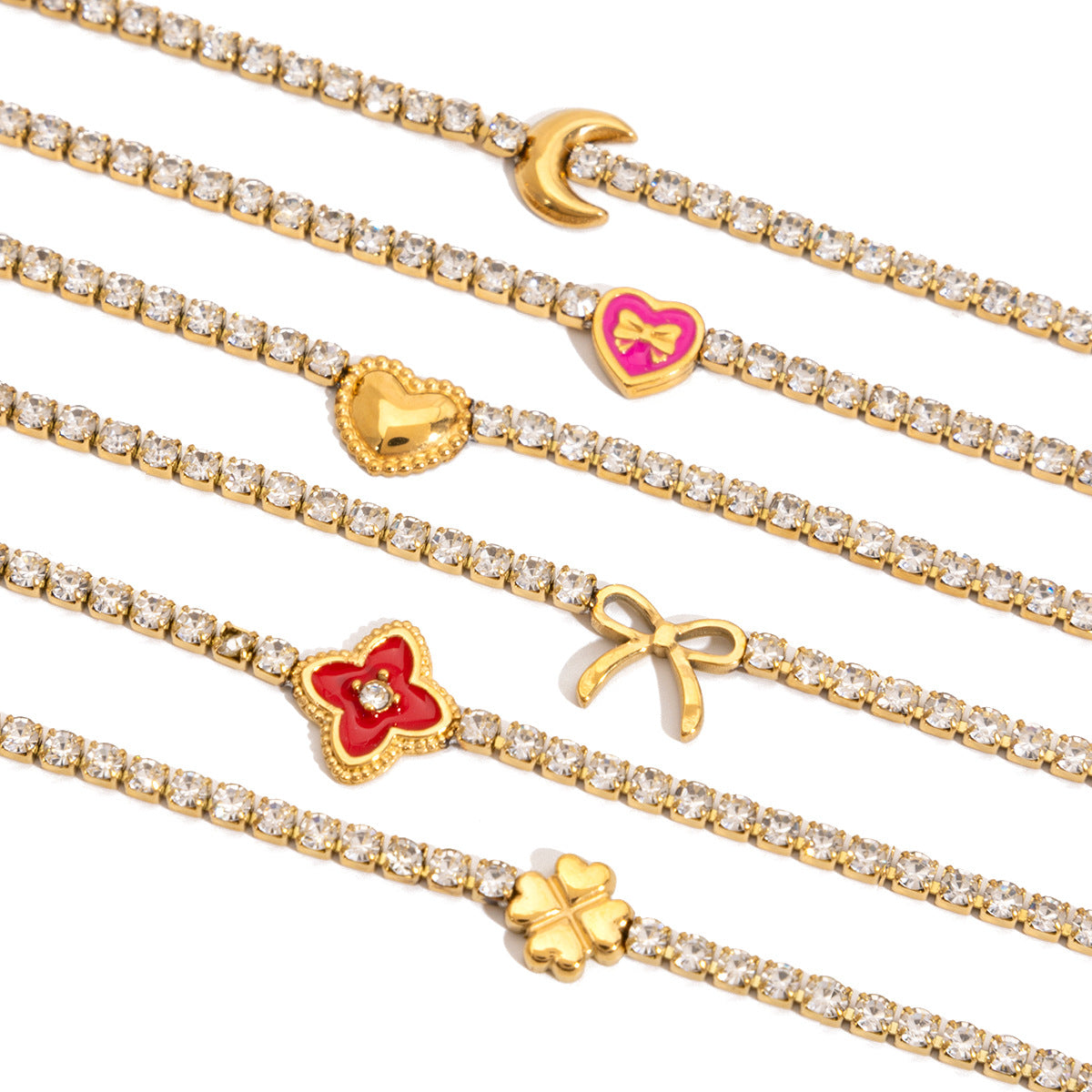 Wholesale Stainless steel zircon chainbracelet with heart and bowknot design