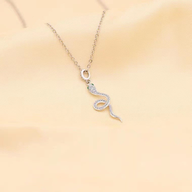 Wholesale S925 Sterling Silver Diamond-encrusted Curved Snake Pendant Necklace