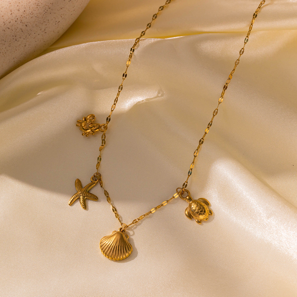 Wholesale Titanium Steel Ocean Series Conch Sea Star Dolphin Shell Waterproof Beach Necklace