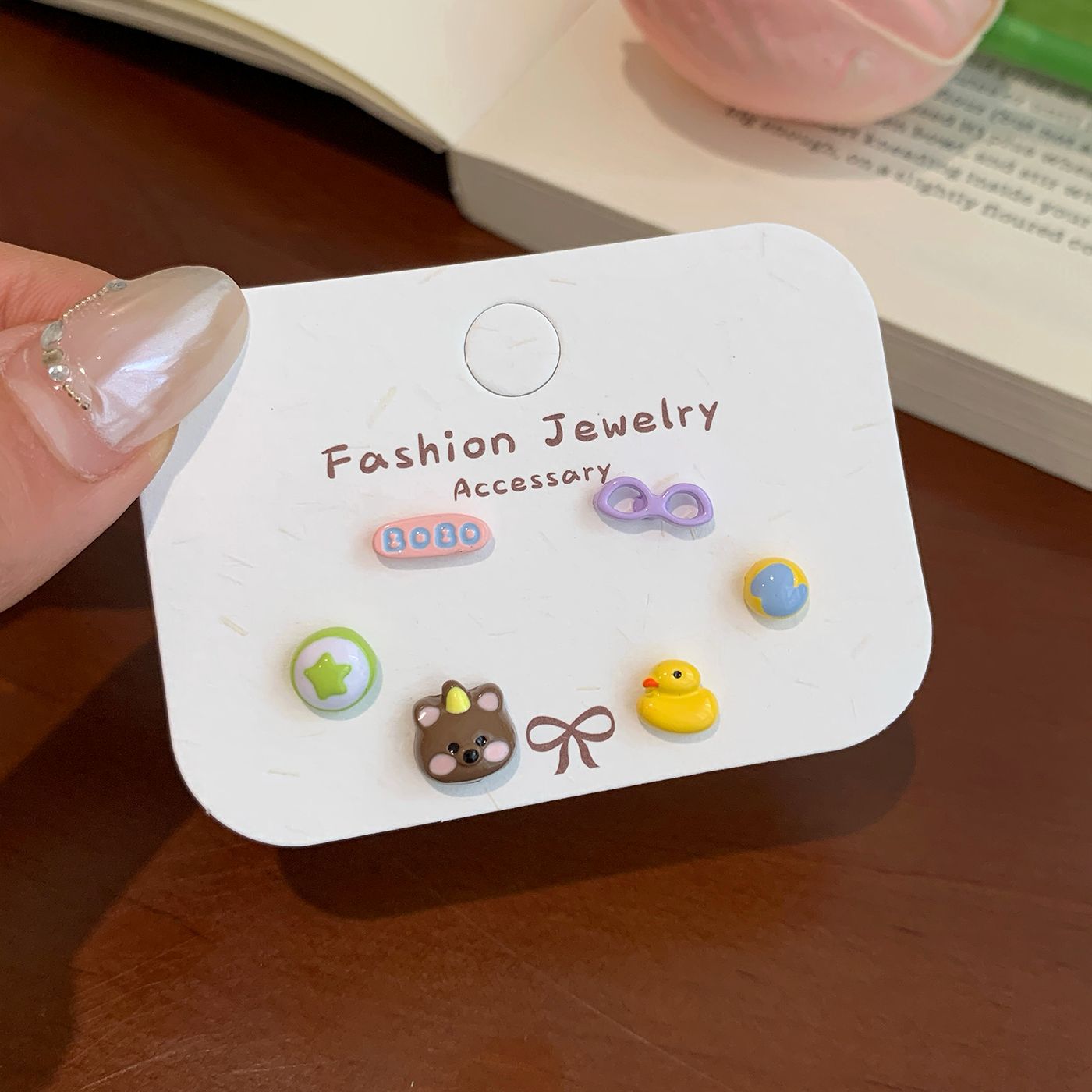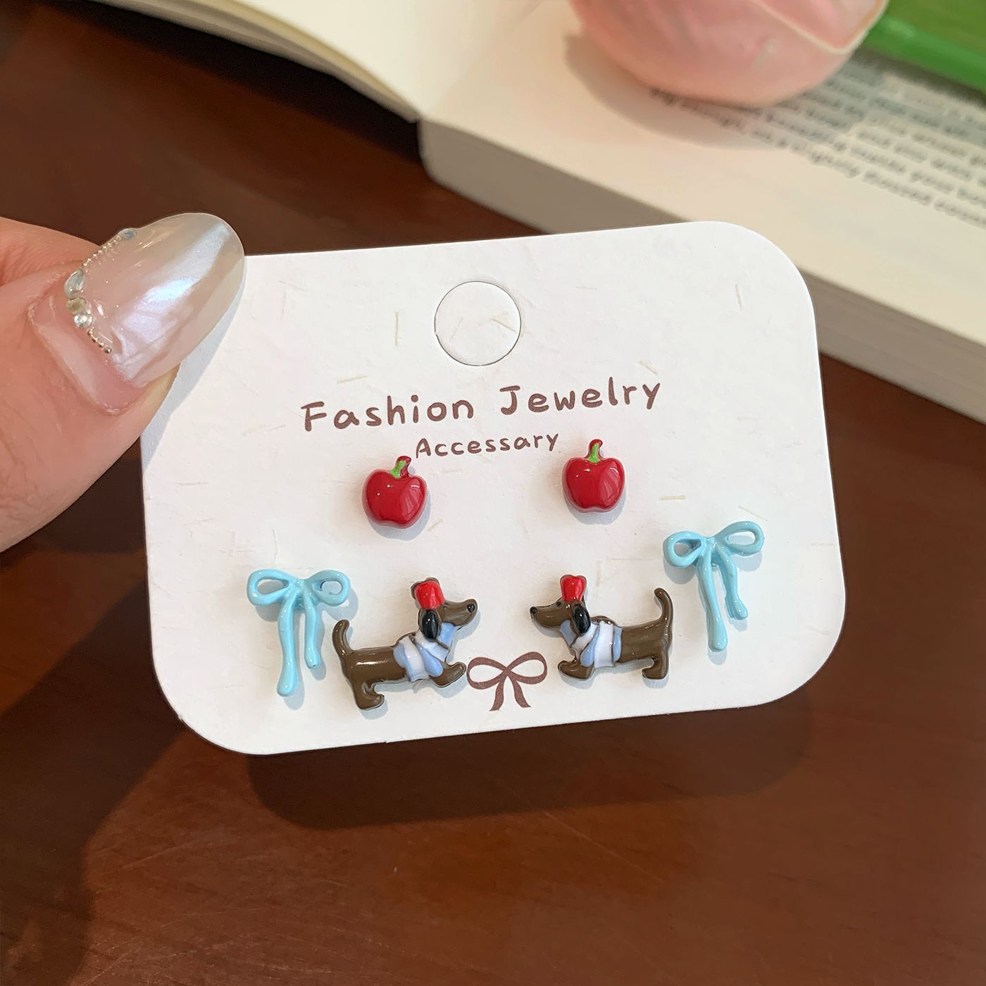 Wholesale Cartoon cute dachshund unicorn earrings set silver needles