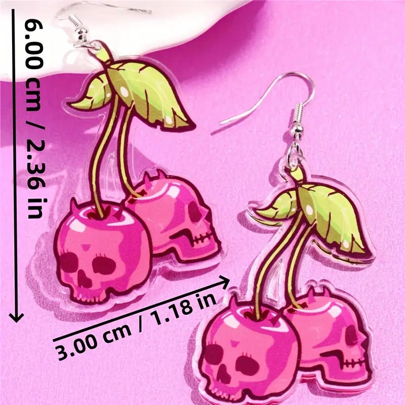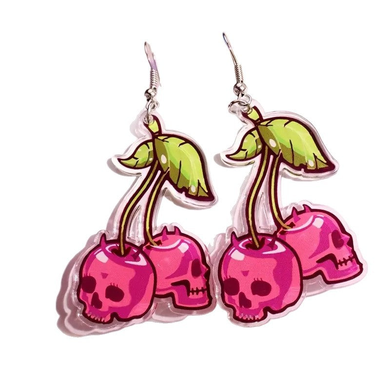 Großhandel Cherry Skull Ohrringe flache Acrylohrringe