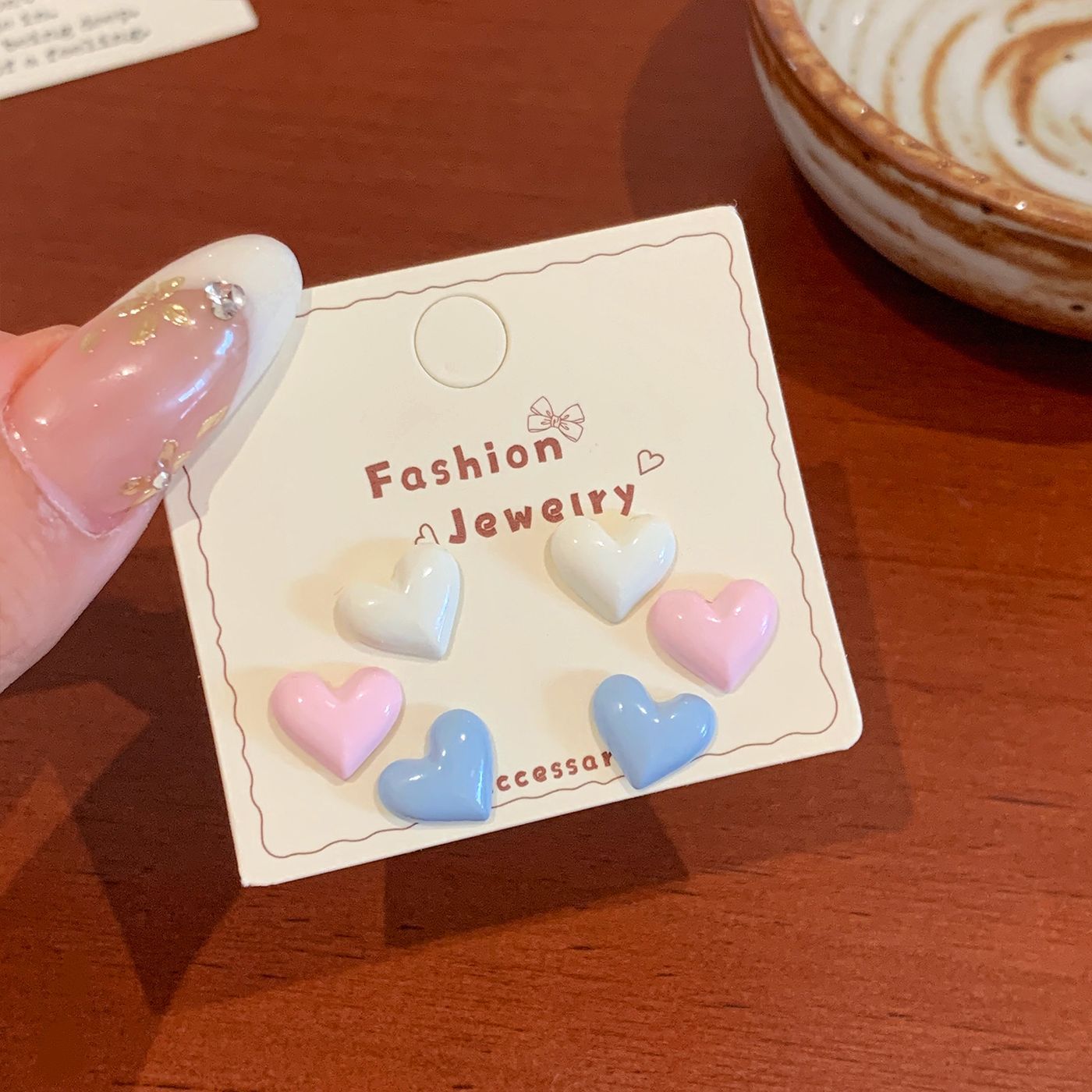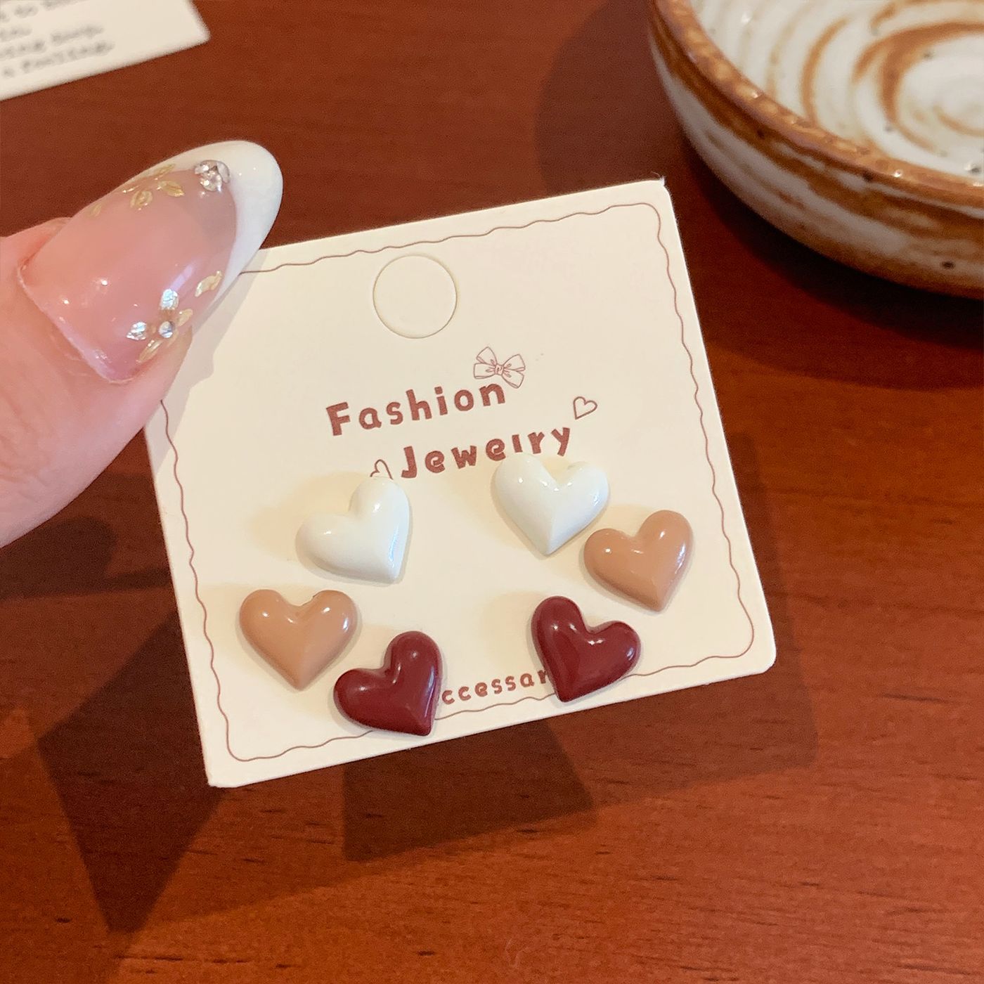 Wholesale Dopamine Cream Wind Drop Oil Heart Earring Set