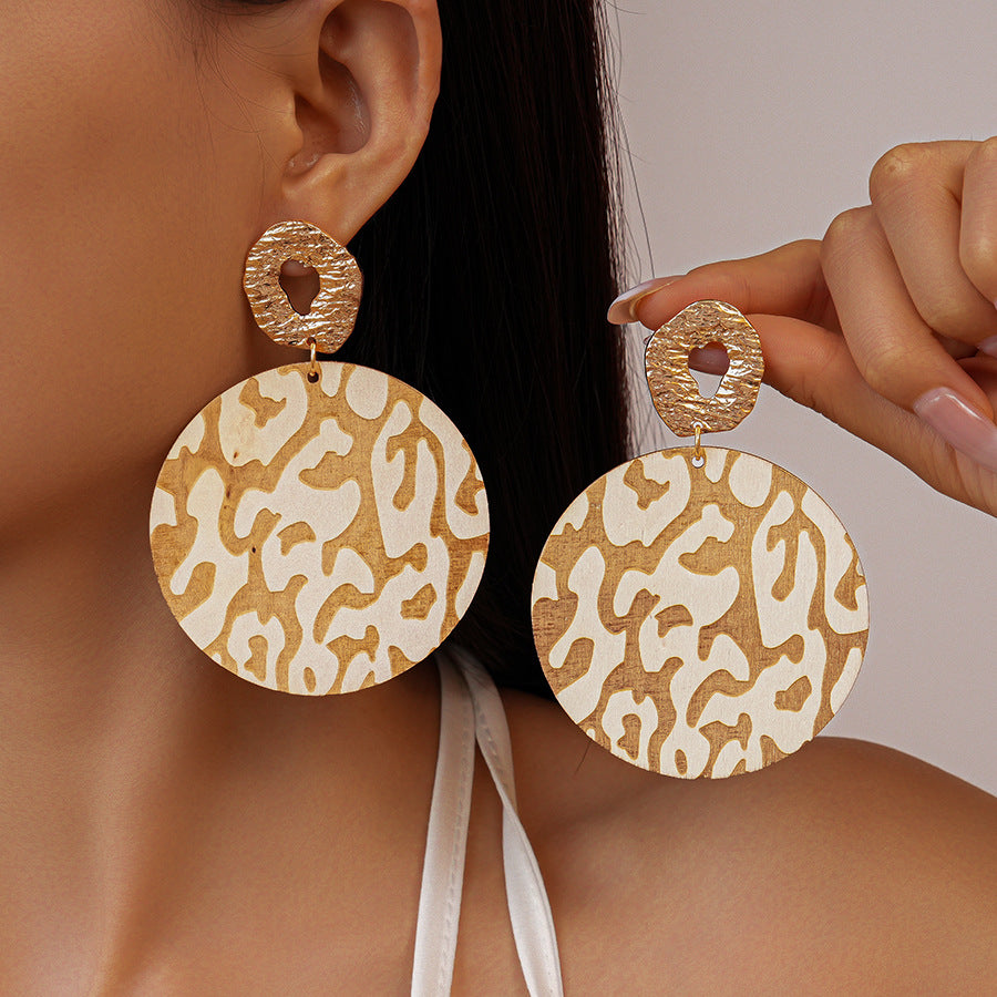 Wholesale Exaggerated wood wrinkle round silver needle earrings